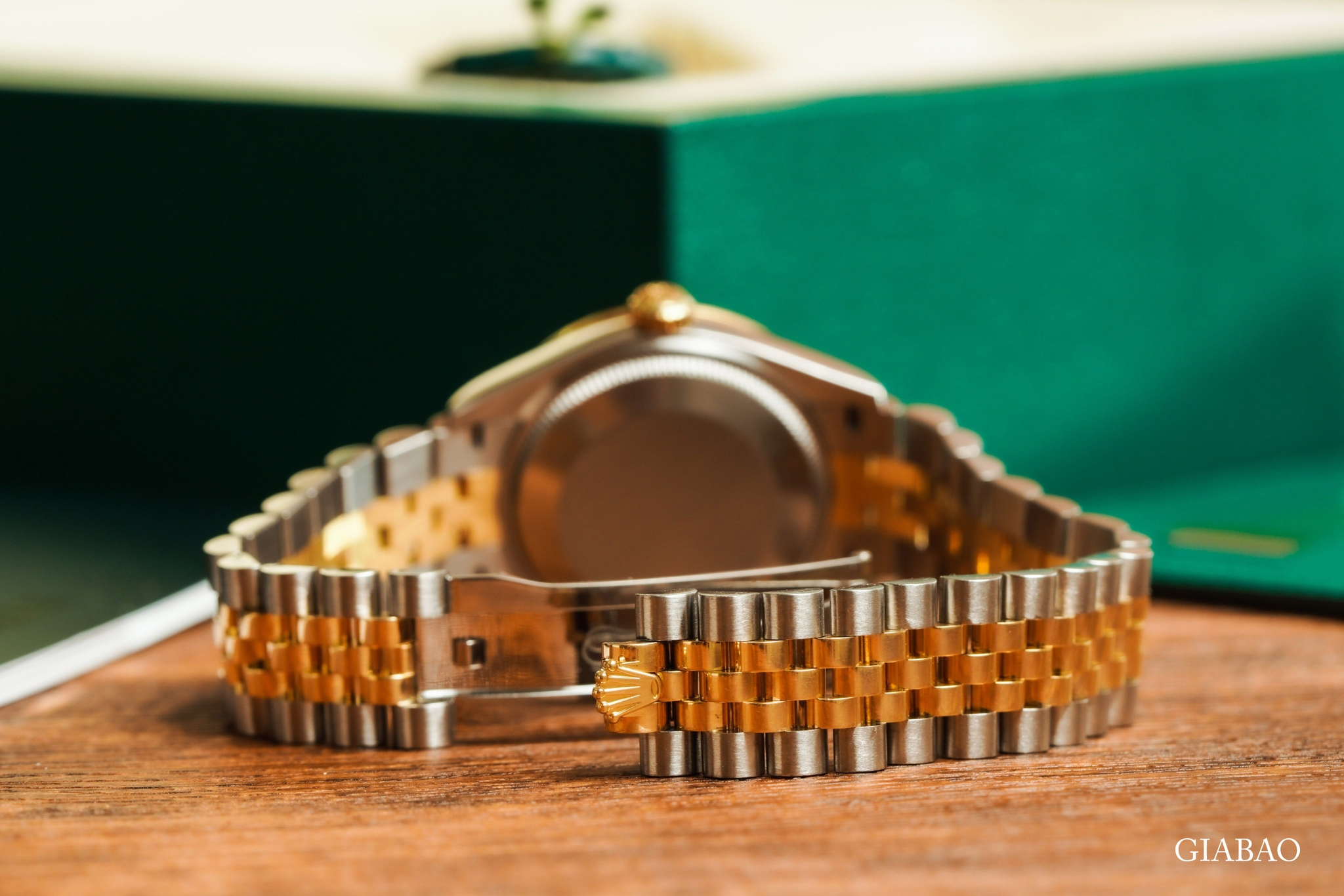 Xuất hiện trong bộ vỏ Oyster kín nước đặc trưng, cỗ máy thời gian này được thương hiệu Rolex tạo ra từ thép không gỉ bền chắc và vàng Gold quý tộc. Thiết kế bốn càng nối dây bằng thép bóng loáng nối liền bộ khung vỏ cùng dây đeo Jubilee mảnh mai tạo nét hiện đại, trẻ trung và đầy nữ tính cho phiên bản lần này.