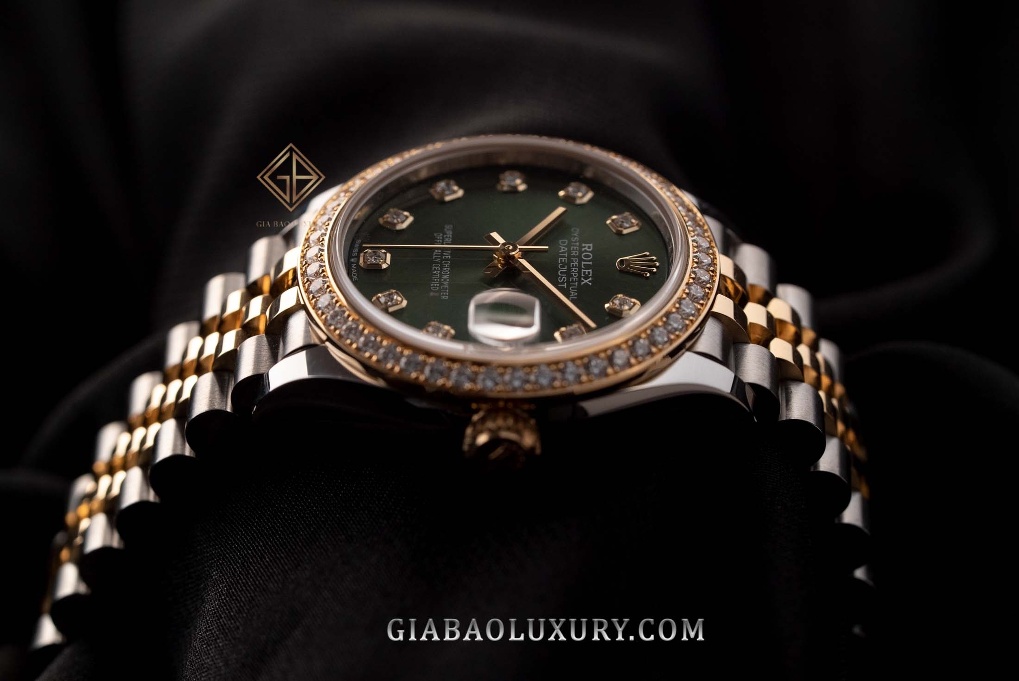 Đồng Hồ Rolex Datejust 31 278383RBR Mặt Số Xanh Oliu Nạm Kim Cương có kích thước 31mm, rất vừa vặn trên cổ tay của các quý cô. Quý cô nếu bị thuyết phục bởi vẻ đẹp và độ chính xác của chiếc đồng hồ này? Liên hệ ngay với Gia Bảo Luxury để mang sản phẩm về nhà với mức giá tốt nhất.