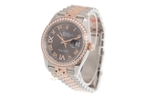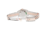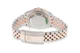 Bộ dây Jubilee cũng được kết hợp bởi hai chất liệu này, với ba mắt dây trung tâm bằng vàng và mắt dây bên ngoài bằng thép. Phương pháp hoàn thiện từng mắt dây cũng khác nhau, kết hợp giữa đánh bóng và chải xước tạo nên độ tương phản cao. Phiên bản Rolex Datejust 36 126281RBR-0011 sử dụng khóa hộp thay vì khóa vương miện, và bộ khóa cũng được ghép từ hai chất liệu.