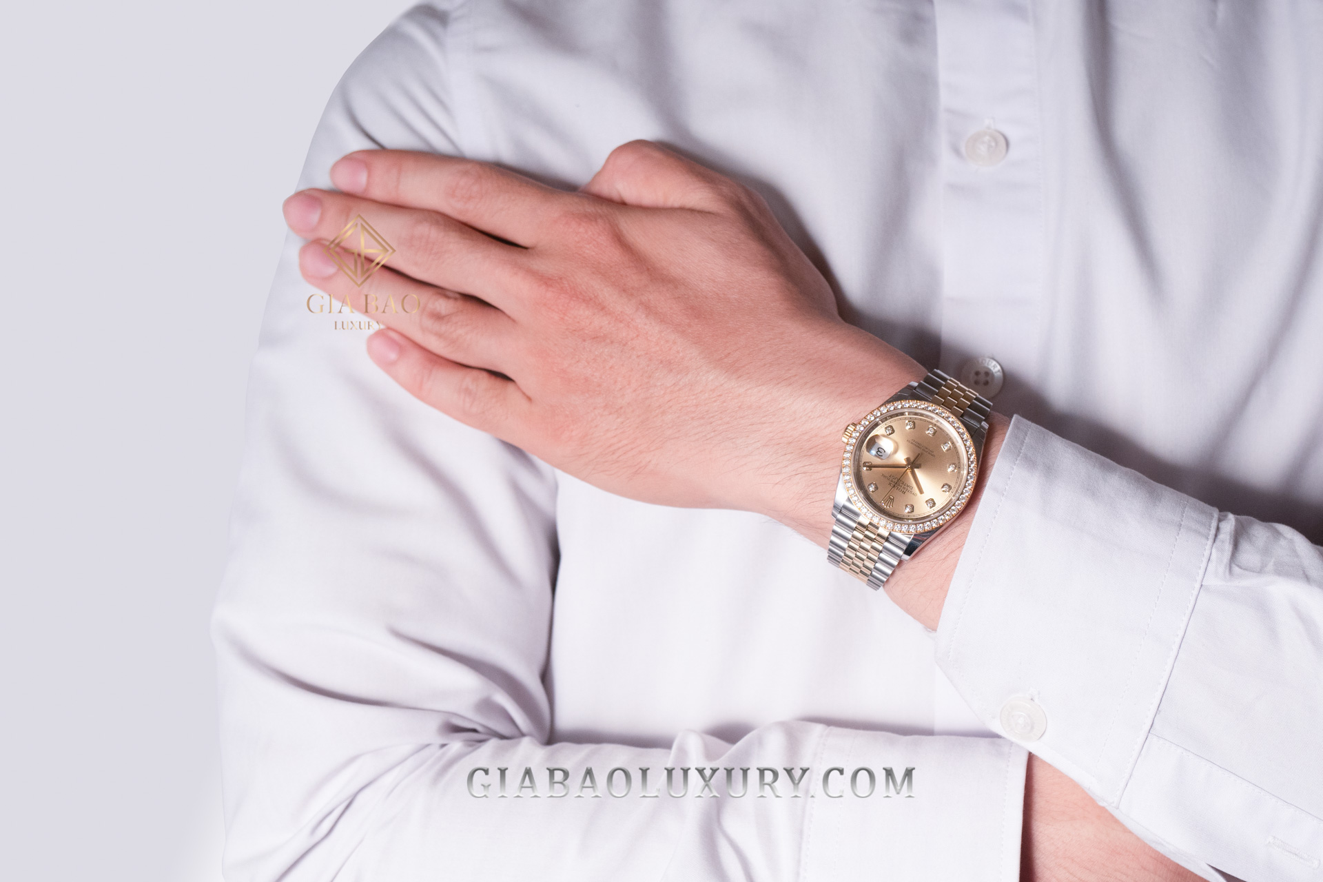 Giới thiệu đồng hồ Rolex Datejust 36 126283RBR Mặt Số Vàng Champagne Nạm Kim Cương (Used)