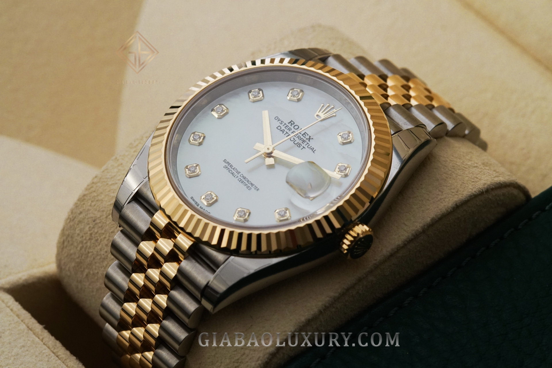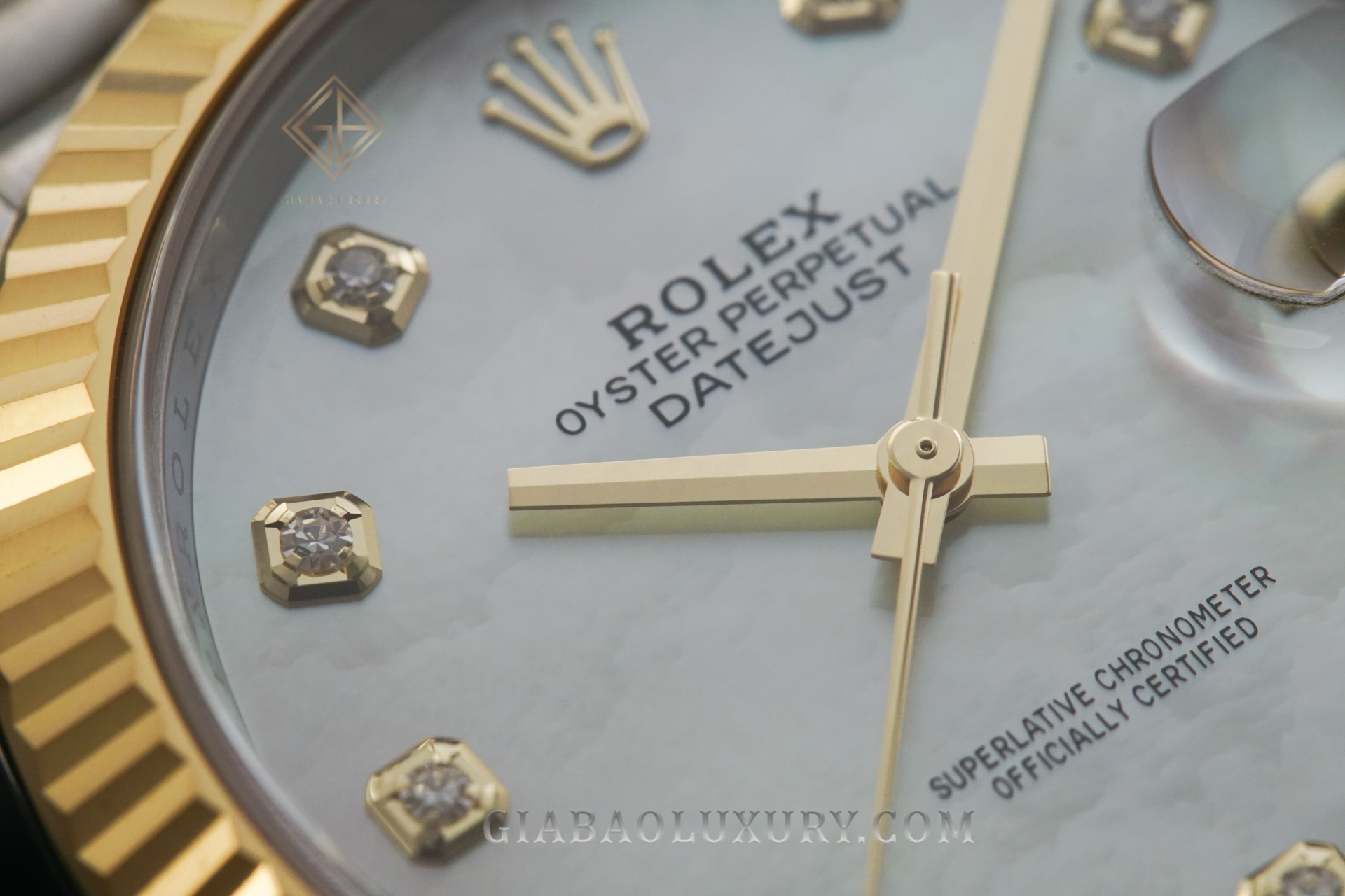 Mặt số sử dụng kỹ nghệ chế tác khảm trai khiến cho mặt số trở nên vô cùng cuốn hút với các ánh màu khác nhau ở các góc nhìn khác nhau. Theo như trang chủ của Rolex thông báo thì nguyên liệu chế tác mặt ốc của Rolex chính là những nguyên liệu tinh khiết nhất, trải qua quá trình chọn lọc vô cùng khắt khe. Nổi bật trên nền mặt số là những cọc số kim cương thiên nhiên lấp lánh. Bên cạnh góc 3h chính là ô cửa sổ hiển thị lịch ngày vô cùng tiện ích.