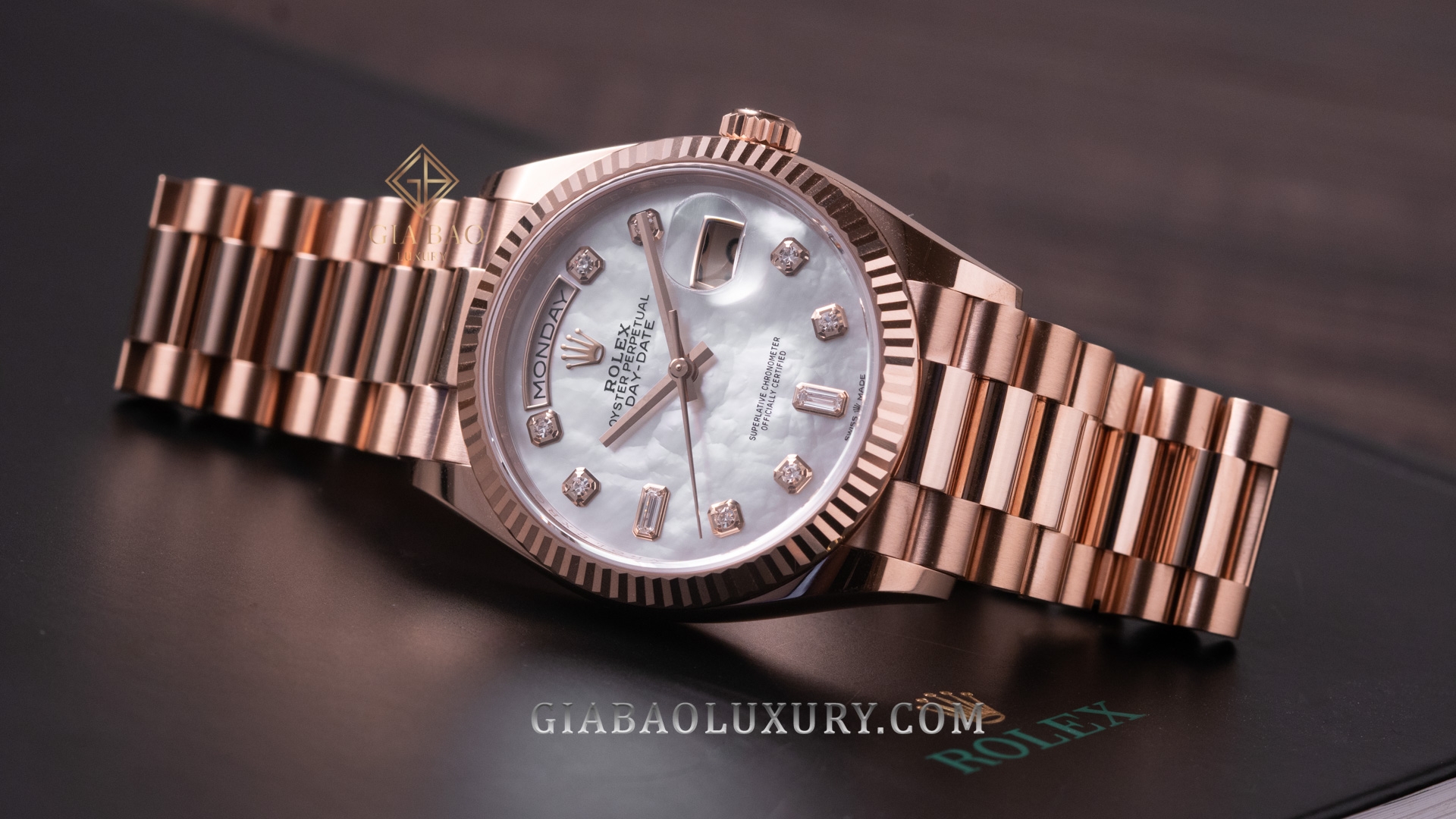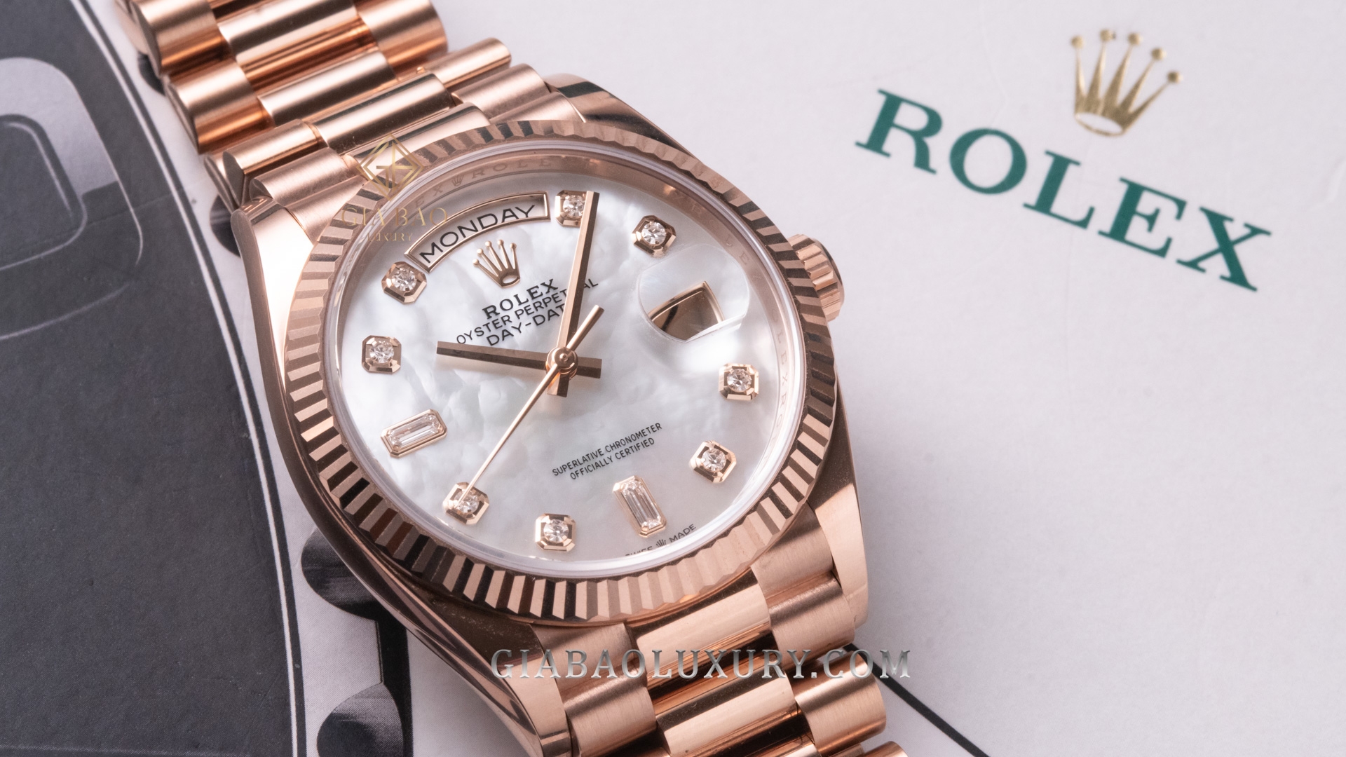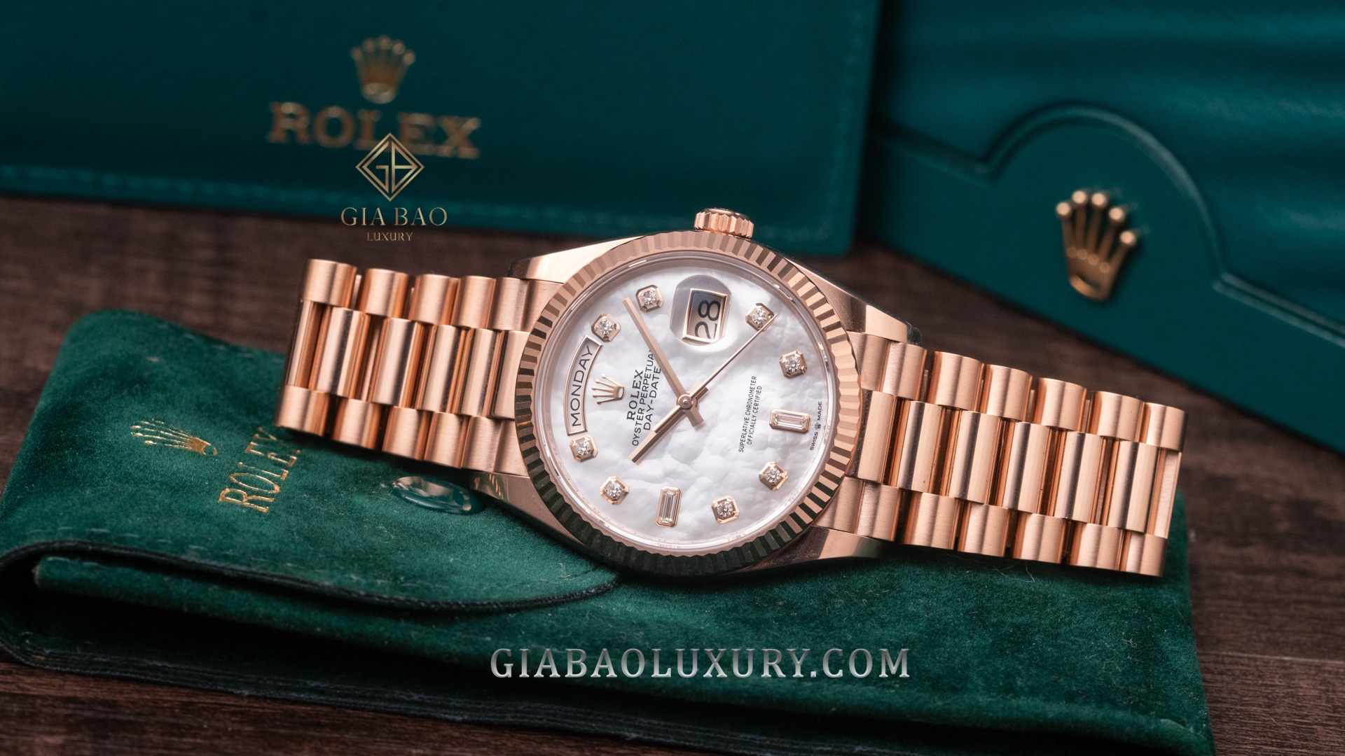 Giới thiệu đồng hồ Rolex Day-Date 36 128235-0029 Mặt Số Vỏ Trai Trắng
