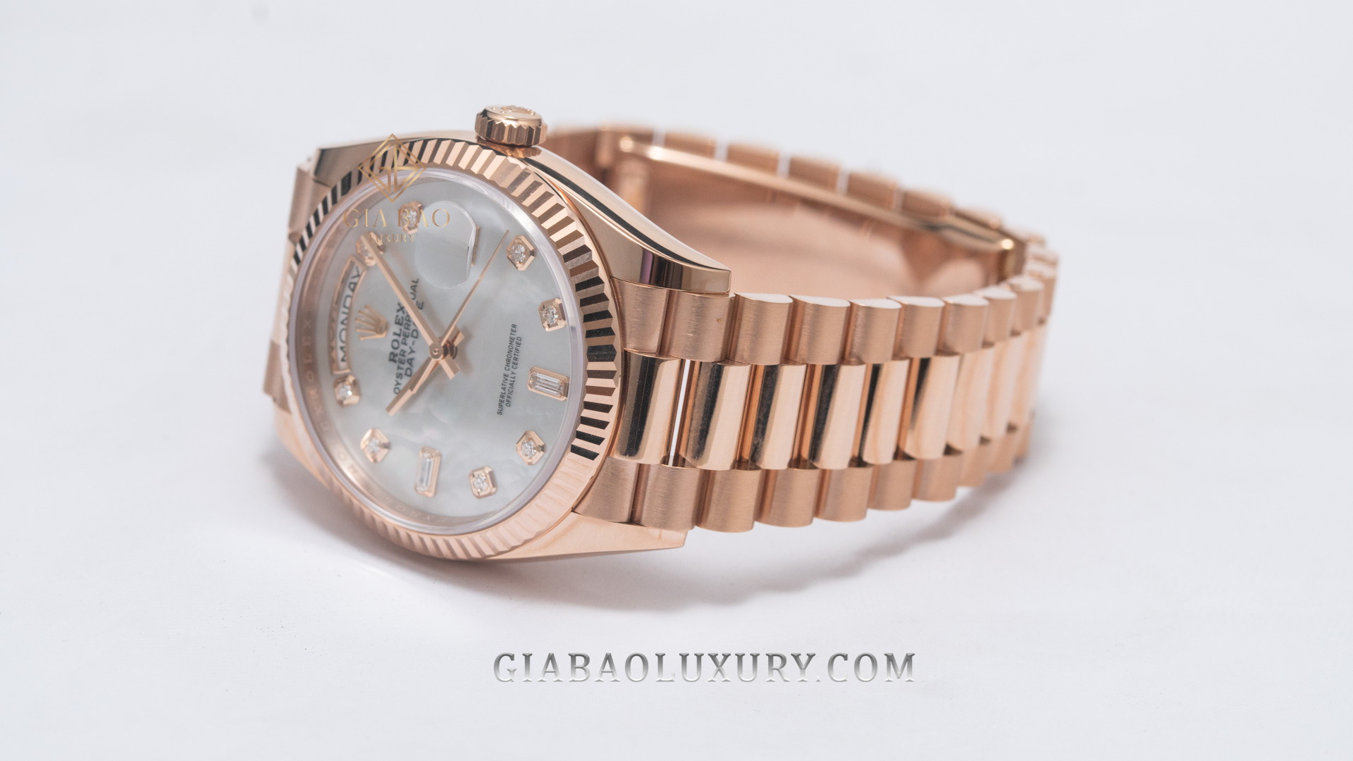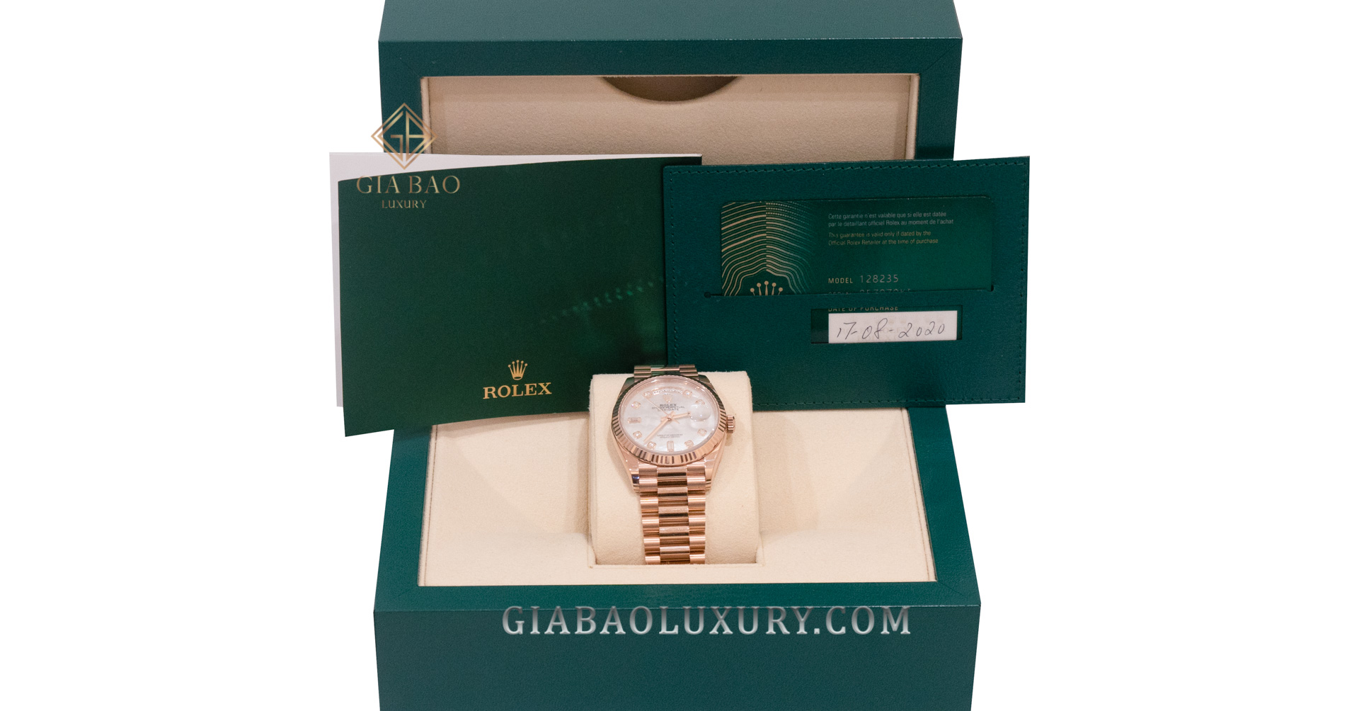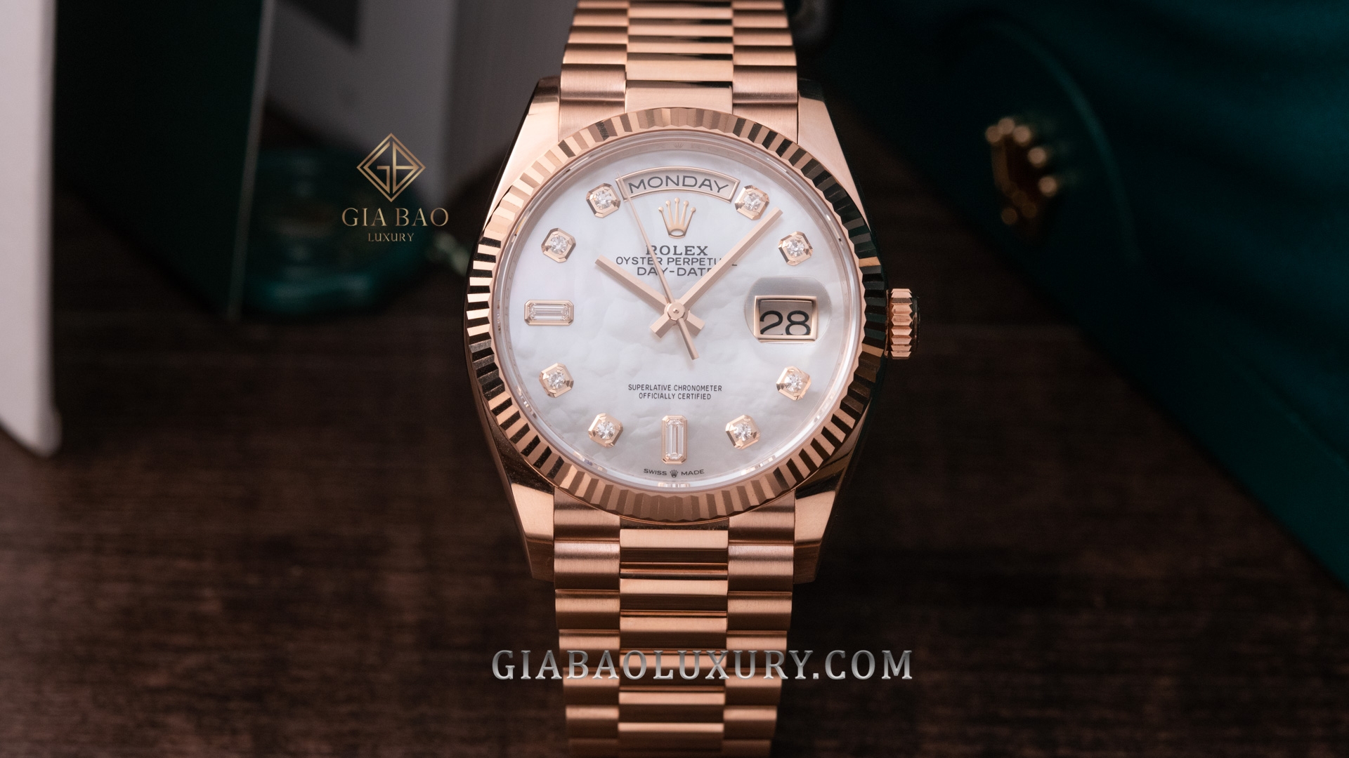 Giới thiệu đồng hồ Rolex Day-Date 36 128235-0029 Mặt Số Vỏ Trai Trắng