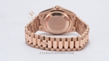 Không chỉ sở hữu thiết kế hoàn mỹ, nhà sản xuất đã khéo léo lồng ghép các đặc trưng truyền thống của bộ sưu tập Rolex Day-Date huyền thoại trong phiên bản này. Đó là ô cửa báo thứ ở vị trí 12 giờ viền vàng sắc nét, bộ kim thanh mảnh dáng gậy được đánh bóng cẩn thận cùng ô cửa báo ngày nằm khiêm tốn ở vị trí 3 giờ có trang bị ống kính Cyclops.