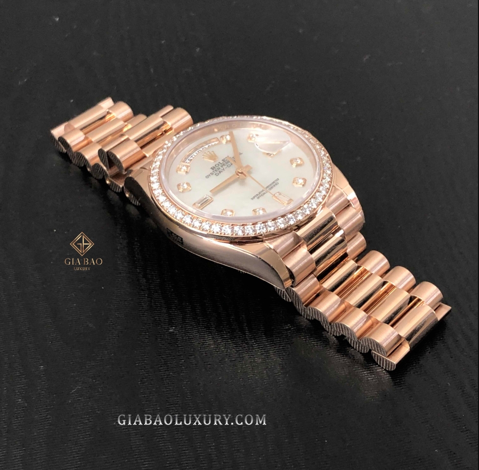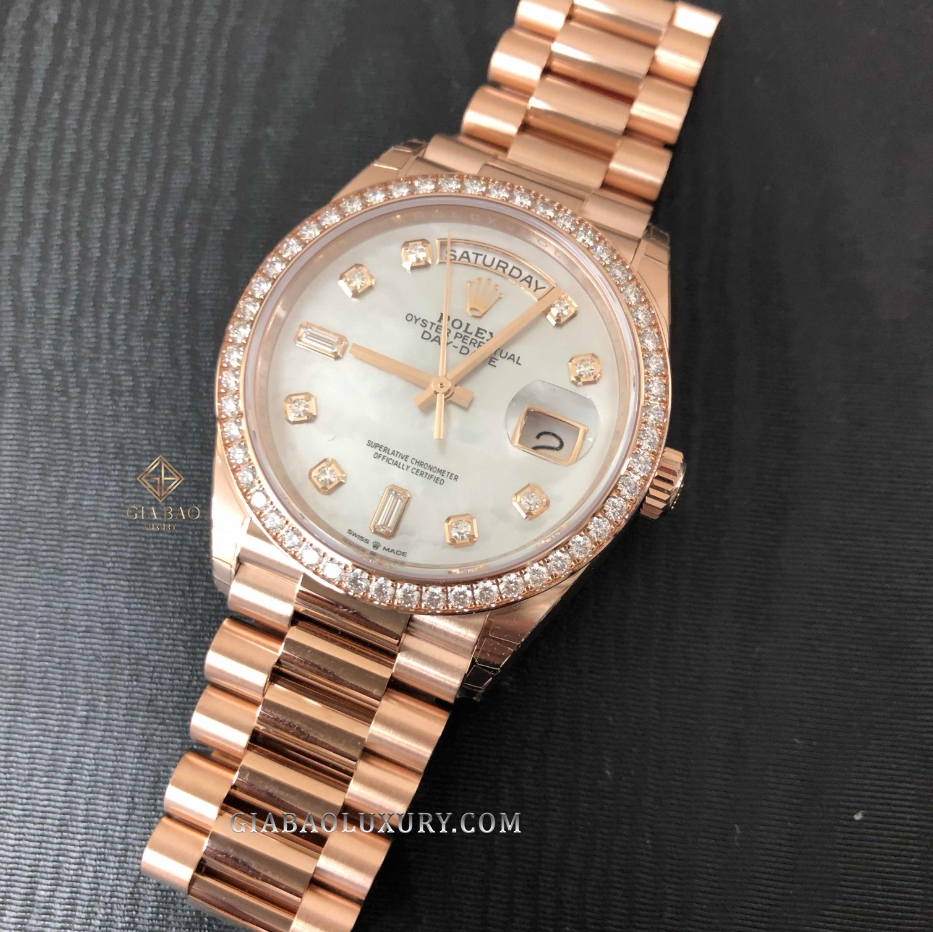Giới thiệu đồng hồ Rolex Day-Date 36 128345RBR Mặt Số Vỏ Trai Trắng
