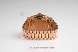 Ngay phần chất liệu, Day-Date 40 228235 đã khẳng định được sự cao cấp của dòng dõi đồng hồ quyền quý khi khoác lên mình lớp vàng hồng 18k nguyên khối - chất liệu độc quyền của Rolex. Dù không trắng sáng như bạc, cũng không óng ánh như vàng, nhưng vàng hồng 18k vẫn được nhiều người yêu thích khi sở hữu màu sắc trầm ấm, nhã nhặn. Đây cũng chính là nét đẹp riêng biệt, giúp cho vàng hồng không bị trộn lẫn với bất kỳ chất liệu nào khác.