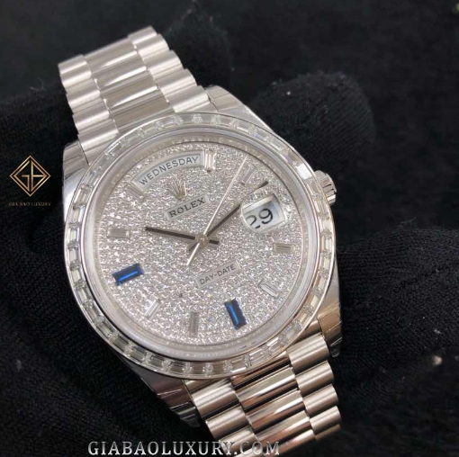 Ra mắt tại BaselWorld 2015, sự xuất hiện của dòng sản phẩm Day-Date 40 đã mở ra chương mới trong lịch sử những bộ sưu tập huyền thoại của thương hiệu Rolex. Hôm nay, Gia Bảo Luxury rất hân hạnh được giới thiệu quý khách hàng chiếc đồng hồ Rolex Day-Date 228396TBR Mặt Số Kim Cương sang trọng và đẳng cấp.