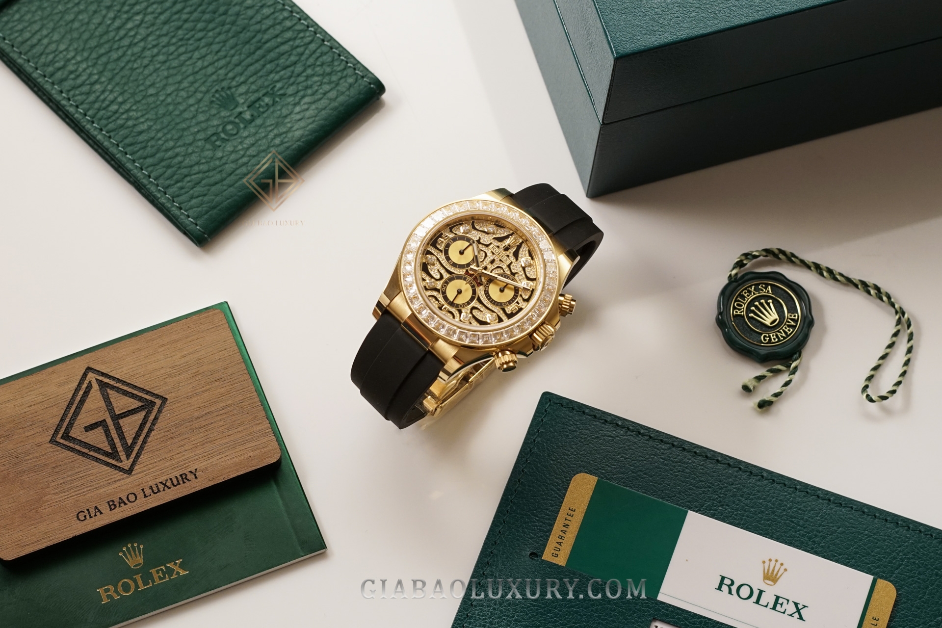 Gia Bảo Luxury đã từng giao lưu với khách hàng những mẫu đồng hồ như Rolex Daytona Rainbow 116595RBOW với dải đá sapphire chuyển màu như một chiếc cầu vồng, và cả chiếc Daytona 116589 SALV với mặt số thiên thạch cùng những viên đá Ruby đỏ cắt dáng baguette được khảm quanh vành bezel, chiếc 116589 SACI là mặt số khảm trai trắng cùng với vành bezel được khảm đá sapphire xanh baguette. Tất cả đều là những mẫu đồng hồ không phải lúc nào cũng có thể sở hữu một cách dễ dàng.