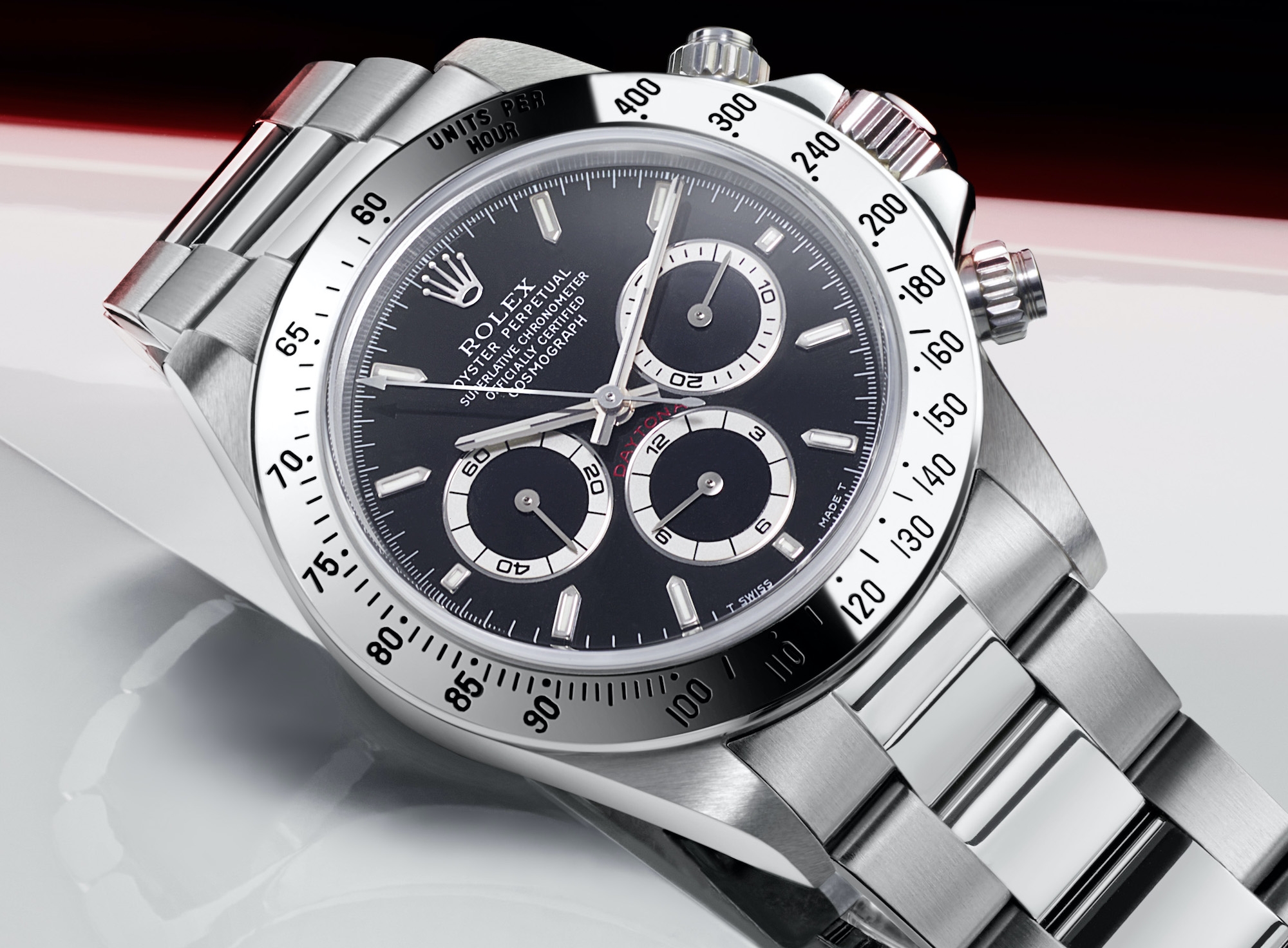 Hiện tại, chiếc Daytona bằng thép vẫn có sẵn với hai tùy chọn mặt số giống nhau, cụ thể là mặt số màu đen với mặt số phụ màu bạc và mặt số màu trắng với khung mặt số phụ màu đen có biệt danh là mặt số Panda. Các mặt số phụ vẫn giữ họa tiết có các đường tròn đồng tâm, mặc dù chi tiết này hầu như không thể được đánh giá bằng mắt thường.
