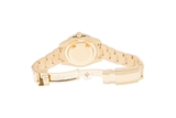 Mặt số đồng hồ cũng được làm từ vàng vàng, và nạm kín kim cương, tone suit tone với bộ vỏ. Nhờ sở hữu một xưởng kim hoàn riêng, Rolex hoàn toàn có thể lựa chọn những viên kim cương phù hợp nhất để trám trên mặt số. Bạn có thể thấy rằng từng viên kim cương nhỏ xíu đều được đính ngay hàng thẳng lối, không có một viên nào bị sai lệch cả về vị trí lẫn kích thước.
