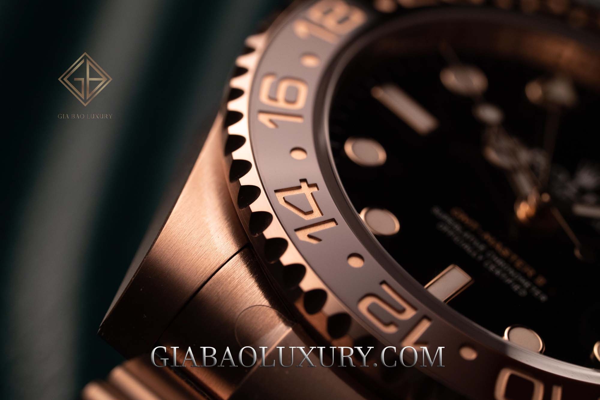 Phiên bản được có mặt tại Gia Bảo Luxury được trang bị bộ vỏ chống trầy xước và va đập tốt từ vàng Everose, thứ vàng độc quyền được Rolex tự mình nghiên cứu, và sử dụng chính thức từ năm 2005 đến nay. Những đường chải xước mờ, hay viền cạnh của vỏ khung đến cuối cùng cũng tôn lên dáng vẻ mạnh mẽ cho phiên bản Rolex GMT Master II ref. 126715CHNR.