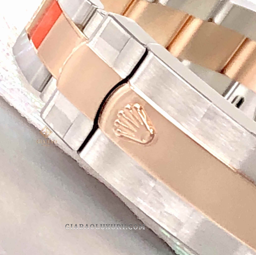 Lady-Datejust 279171 sử dụng dây đeo Oyster thời trang mối nối 3 mảnh dạng phẳng với liên kết giữa to hơn làm từ vàng hồng.