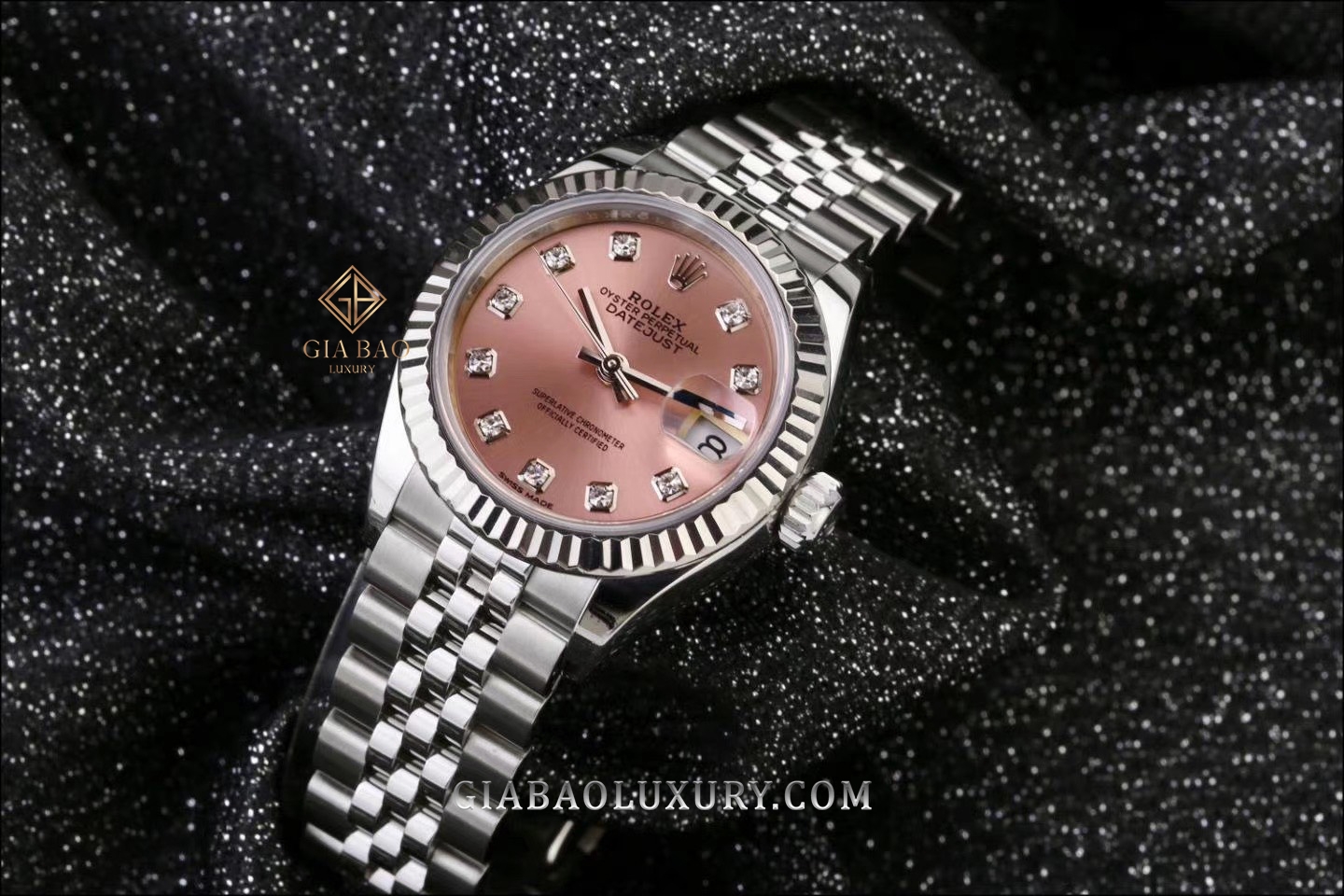 Đồng Hồ Rolex Lady Datejust 279174 Mặt Số Hồng Cọc Số Kim Cương
