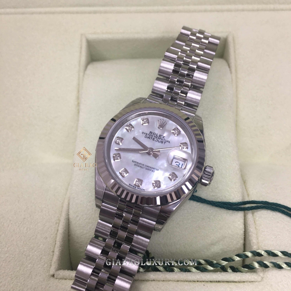 Đồng Hồ Rolex Lady Datejust 28 279174 Mặt Số Vỏ Trai Trắng