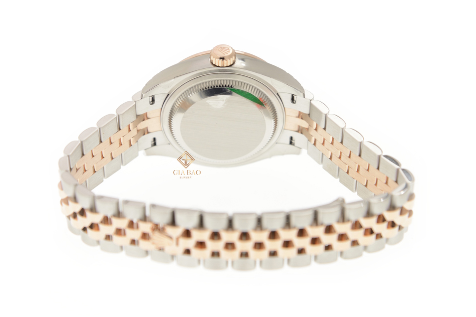 Rolex Lady-Datejust 279381RBR Mặt Số Chocolate Cọc Số La Mã là sự kết hợp hài hòa giữa các vật liệu cao cấp như thép không gỉ, vàng hồng 18k và kim cương. Sản phẩm được hoàn thiện lớp vỏ bằng thép không gỉ. Một loại vật liệu có độ bền cao, các liên kết của thép không gỉ khó có thể bị phá vỡ, vì thế bảo vệ tốt cho bộ máy caliber 2236 ở bên trong hoạt động ổn định ở độ sâu 100m.