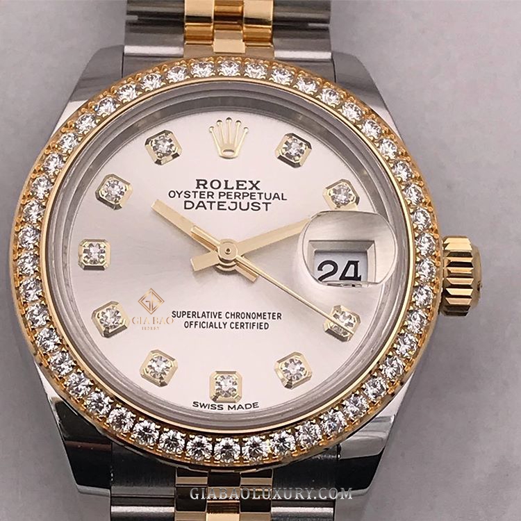 Giới thiệu đồng hồ Rolex Lady-Datejust 28 279383RBR Mặt Số Bạc Nạm Kim Cương