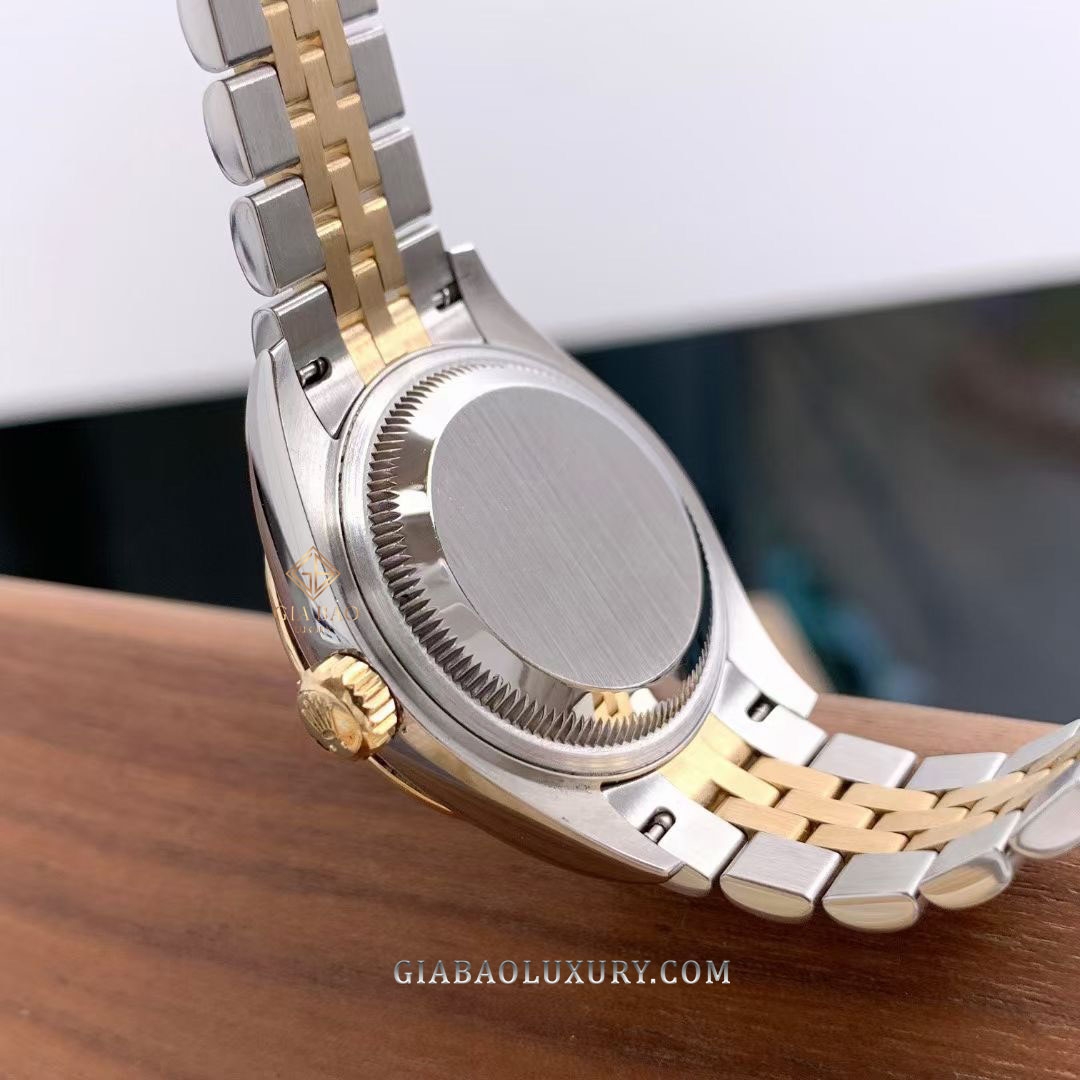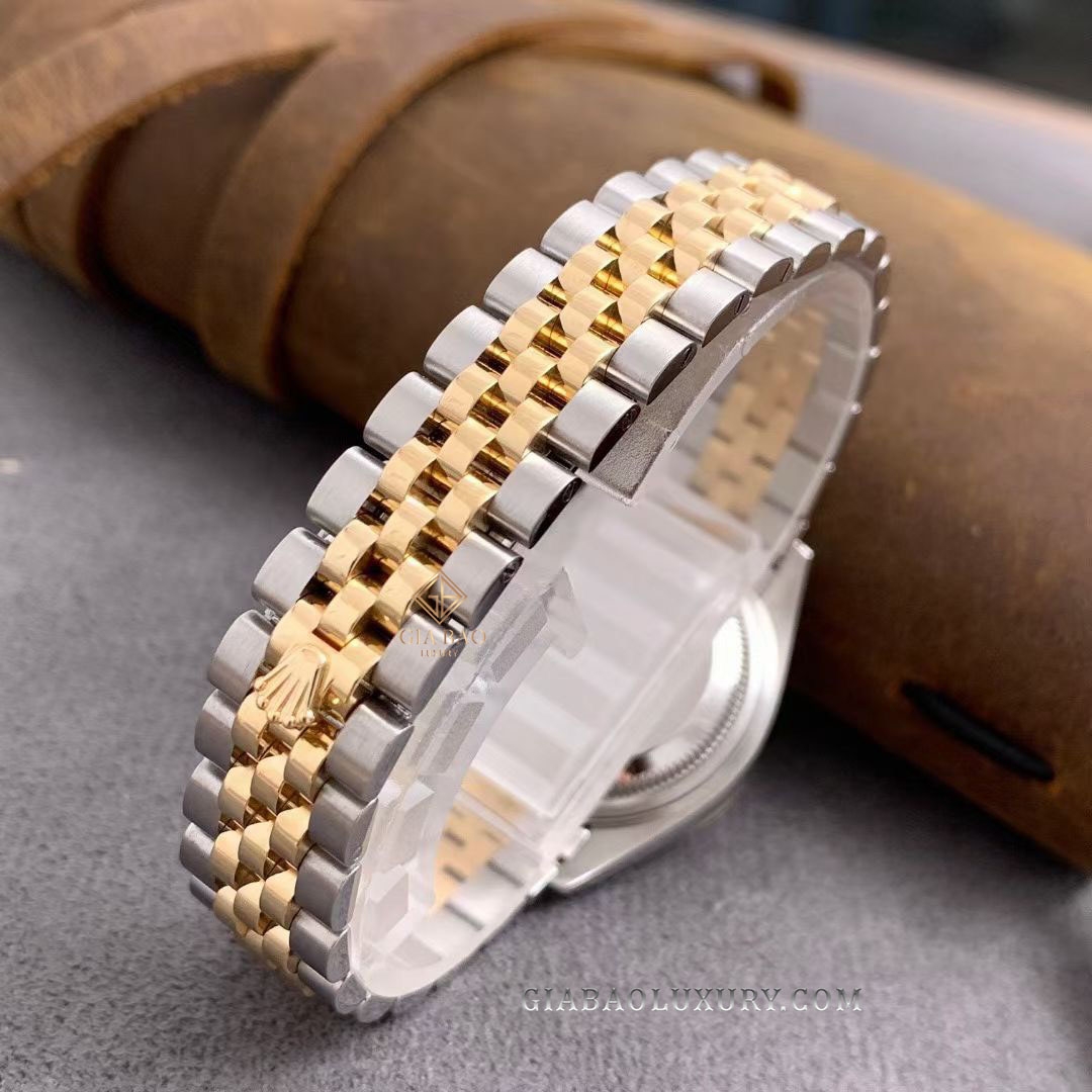 Đồng Hồ Rolex Lady-Datejust 28 279383RBR có kích thước 28mm khá phù hợp với cổ tay xinh xắn của các quý cô. Dây đeo Jubilee thời trang nổi bật với 3 mối nối giữa bằng vàng vàng, hai mối nối ở cạnh làm từ thép không gỉ màu trắng bạc.