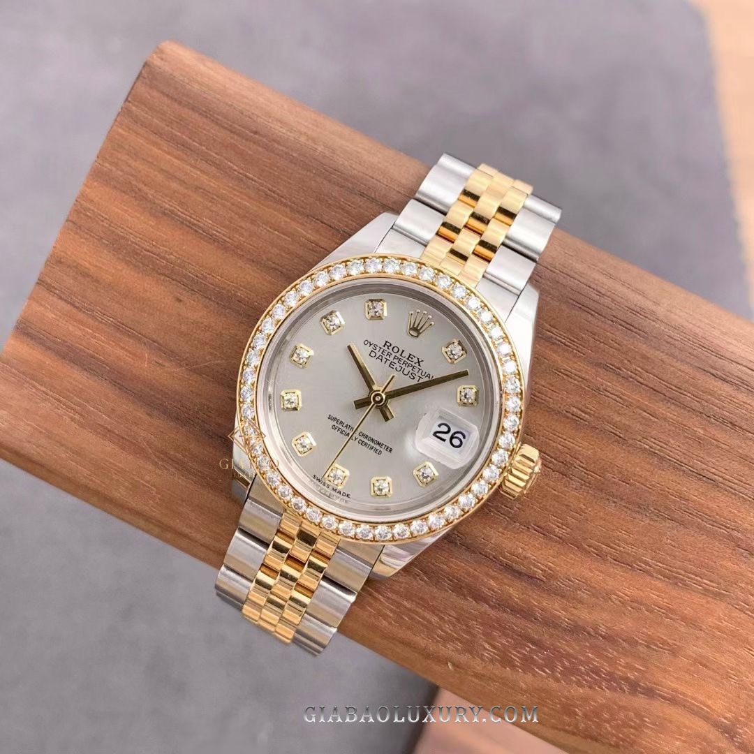 Đồng Hồ Rolex Lady-Datejust 28 279383RBR Mặt Số Bạc Nạm Kim Cương hiện đang bán tại Gia Bảo Luxury. Nếu nàng bị chiếc Rolex Lady-Datejust 28 279383RBR này cuốn hút thì liên hệ ngay với Gia Bảo Luxury để sở hữu sản phẩm với mức giá tốt nhất nhé.