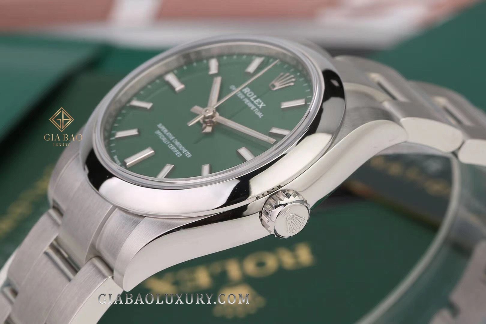 Giới thiệu đồng hồ Rolex Oyster Perpetual 31 277200 Mặt Số Xanh Cọc Dạ Quang