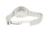 Bên góc 3 giờ của bộ khung là núm chỉnh giờ xoắn vít với hệ thống chống thấm nước 3 tầng Triplock hình vương miện của Rolex. Chúng ta cũng thấy được điểm khác lạ bên trên bộ khung so với các mẫu đồng hồ khác của Rolex, là có một ô chấm nhỏ phía bên góc 9 giờ của bộ vỏ đúng không? Đó là điểm đặc biệt của chiếc đồng hồ khi được trang bị thêm van thoát Helium cho phép khí helium thoát ra, do đó bảo vệ đồng hồ khỏi áp suất không khí và bị bể mặt kính.