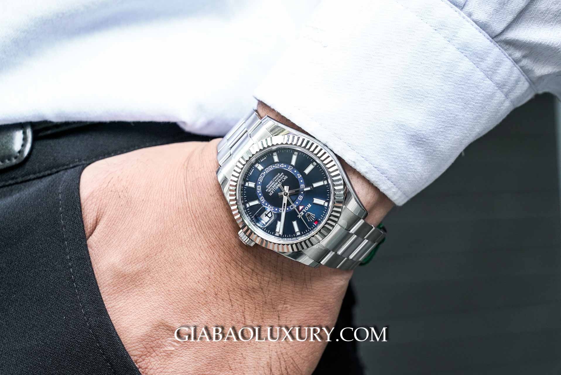 Giới thiệu đồng hồ Rolex Sky-Dweller 326934 Mặt Số Xanh Dây Oyster
