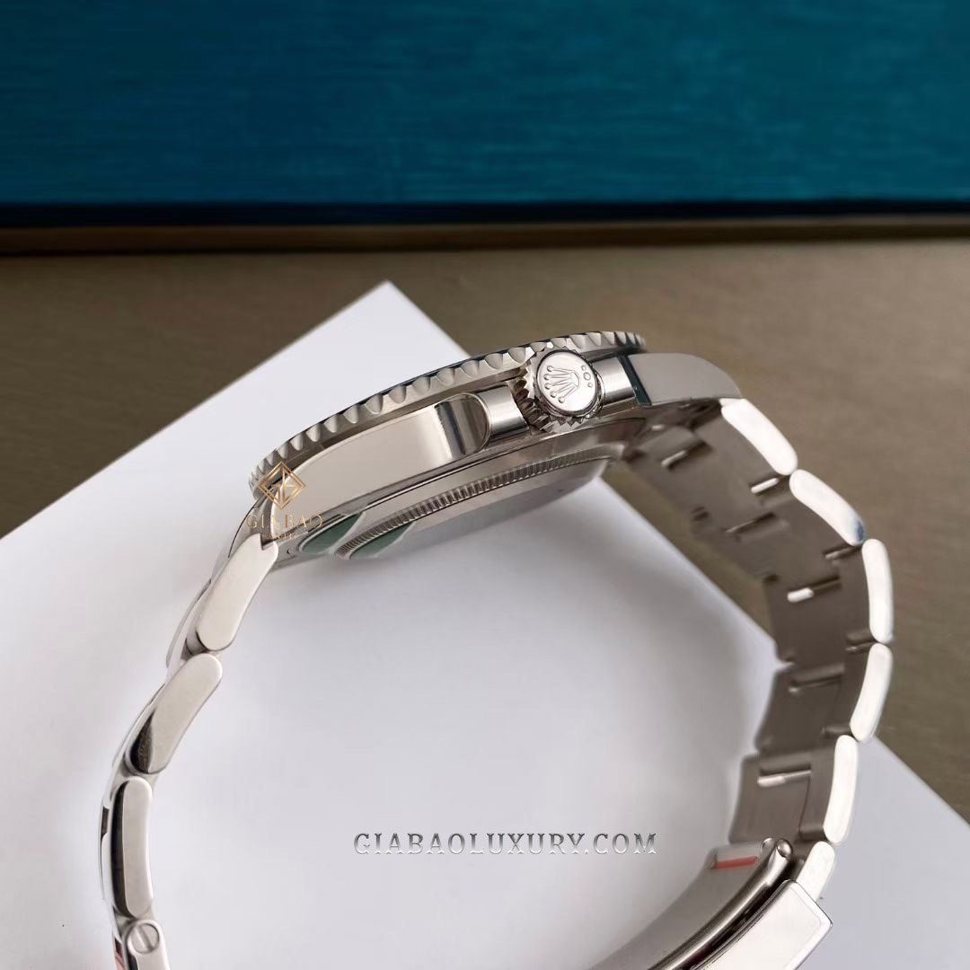 Vành bezel của đồng hồ nổi bật nhờ chất liệu gốm màu xanh có khả năng chống ăn mòn cao kết hợp cùng chi tiết khung Cerachrom chống trầy xước cực tốt. Ngoài ra, Rolex còn khéo léo tích hợp thang đo phút trên vành bezel và phủ chất phát quang lên các vạch số giúp các thợ lặn có thể dễ dàng quan sát thời gian trong hành trình khám phá đại dương.