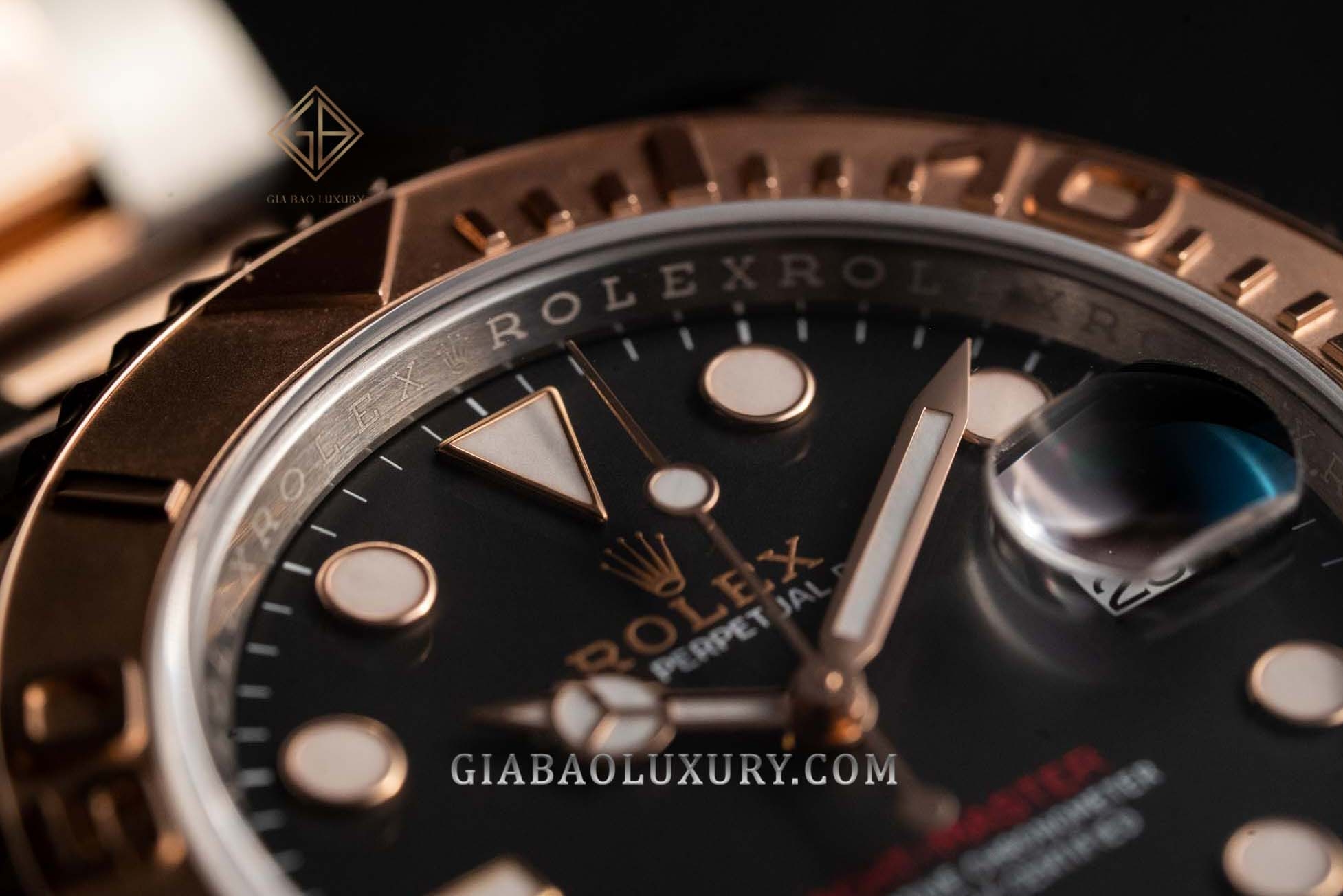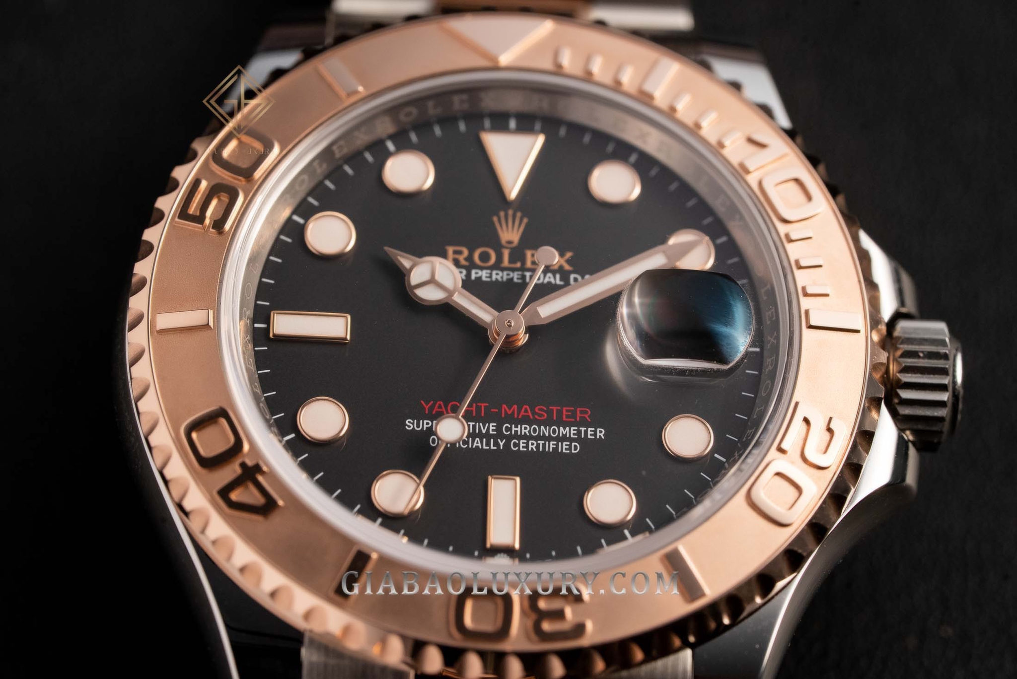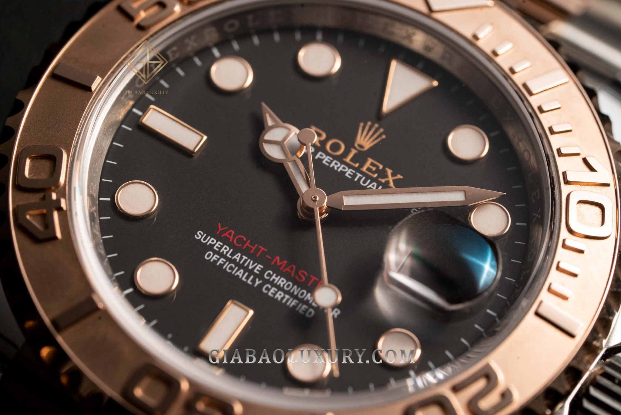 Nổi bật trên nền mặt số sơn mài màu đen là dòng chữ Yacht-Master màu đỏ. Dưới đó, Rolex có ghi dòng chữ thể hiện chiếc đồng hồ đạt chuẩn chất lượng Superlative Chronometer đặc biệt khắt khe. Những chiếc đồng hồ đạt chuẩn chất lượng độc quyền của Rolex có khả năng chống sốc, chống từ tuyệt hảo và chỉ có sai số -2/+2 giây mỗi ngày.