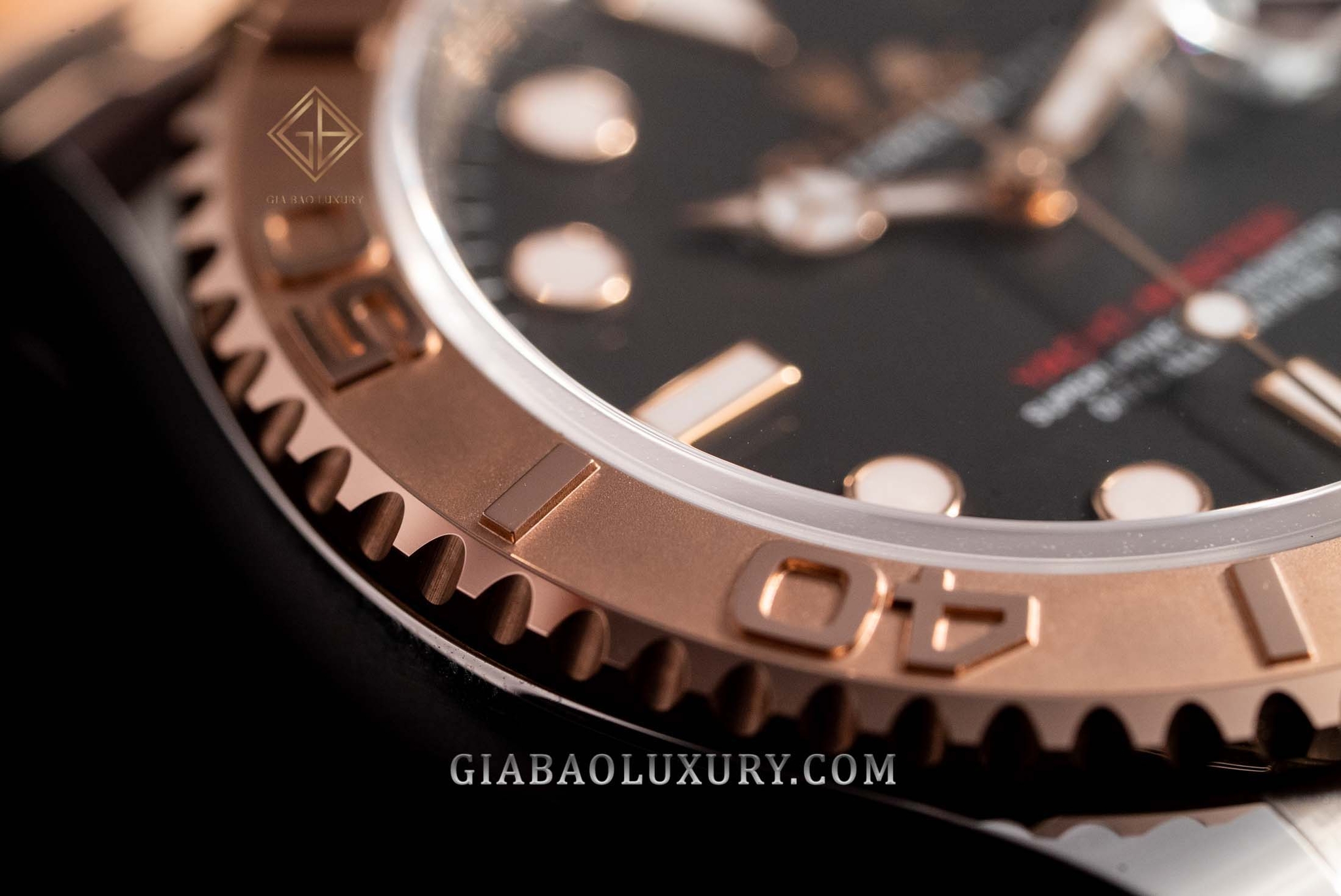 Việc kết hợp thép và vàng khối xuất hiện trên rất nhiều mẫu đồng hồ của Rolex, điều này sẽ đem lại một độ cân bằng cần thiết cho chiếc đồng hồ. Vành bezel của chiếc Rolex Yacht Master 40 126621 cũng được làm từ vàng hồng, với từng chữ số được dập nổi ấn tượng. Theo ý kiến cá nhân tôi, vành bezel của Yacht-Master có ngoại hình ấn tượng hơn hẳn so với Submariner.