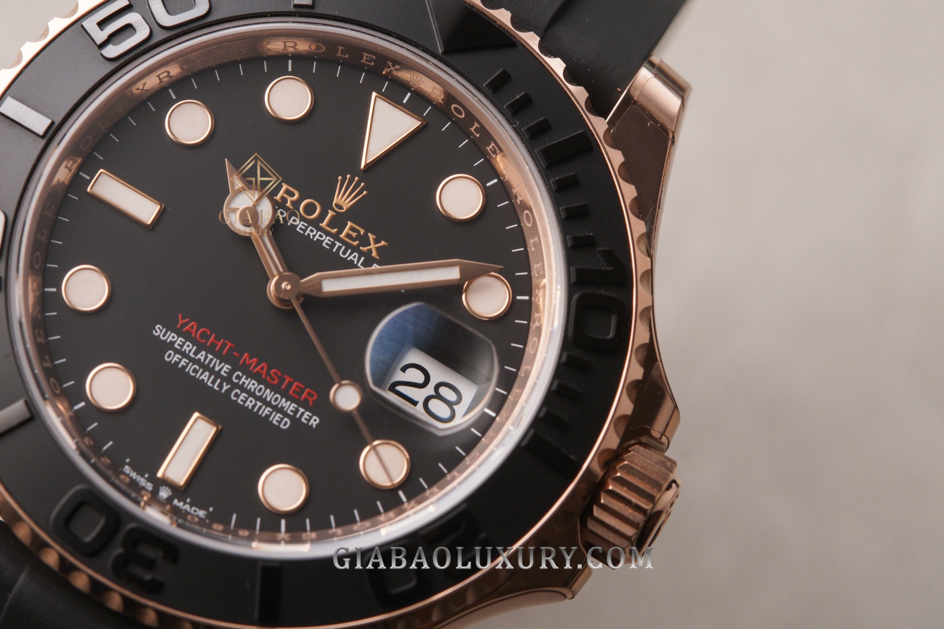 Thể thao, phóng khoáng và lịch lãm là những cụm từ được người hâm mộ ưu ái dành cho Rolex Yacht-Master 126655 - một phiên bản đồng hồ nam chuyên nghiệp dành riêng cho các vận động viên đua thuyền. Xuất hiện trong bộ vỏ vàng Everose tuyệt đẹp là hợp kim độc quyền sản xuất tại xưởng đúc riêng của hãng, với các trang bị tân tiến nhất của công nghệ chế tác đồng hồ nổi tiếng bậc nhất Thụy Sĩ, cỗ máy thời gian này đã gây thương nhớ cho biết bao tín đồ đồng hồ.