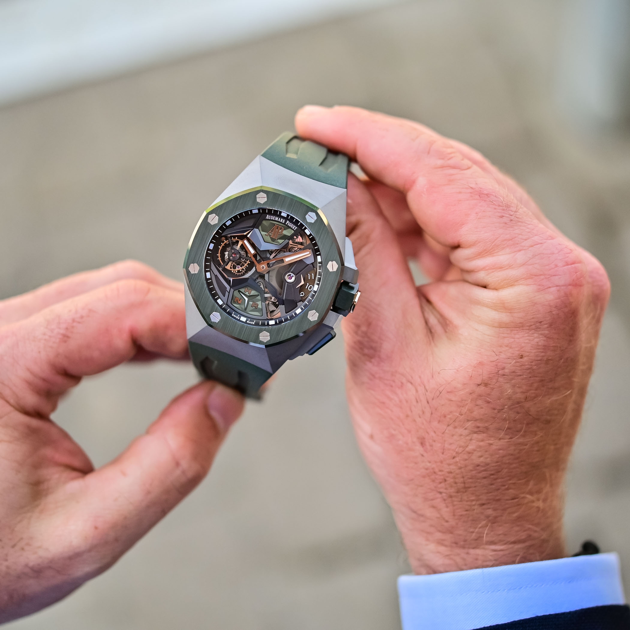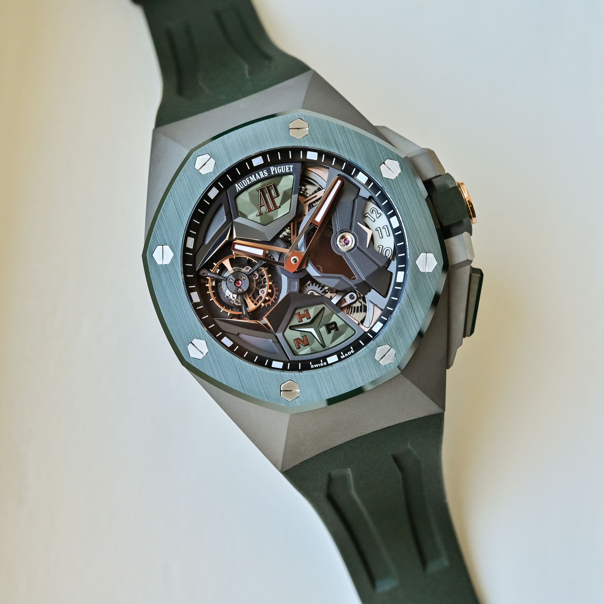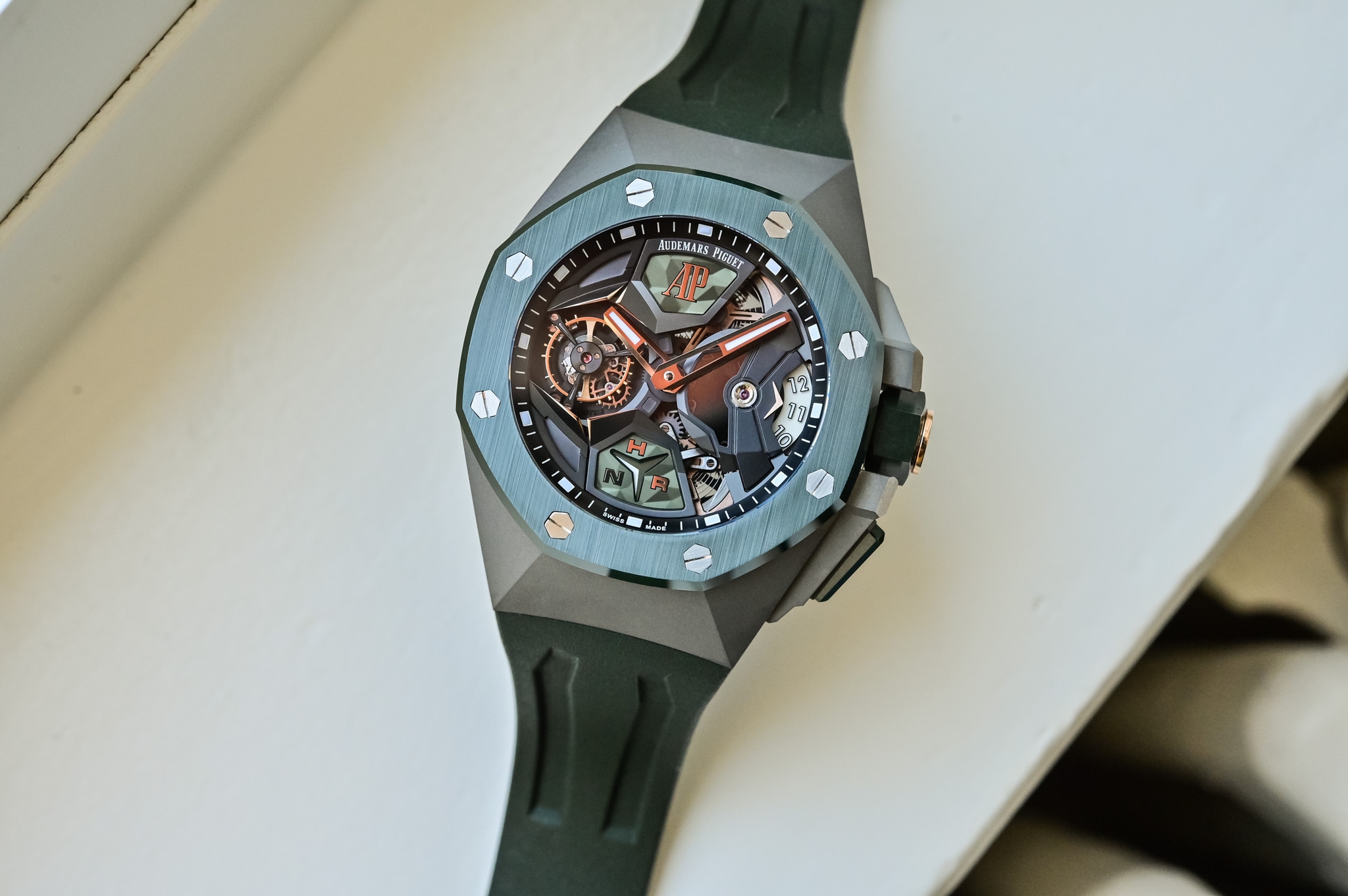 Đồng hồ Royal Oak Concept Flying Tourbillon GMT trình diện trong bộ vỏ xanh lá đổi mới