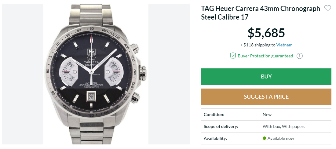 | Xuất xứ | Tag Heuer - Thuỵ Sĩ |