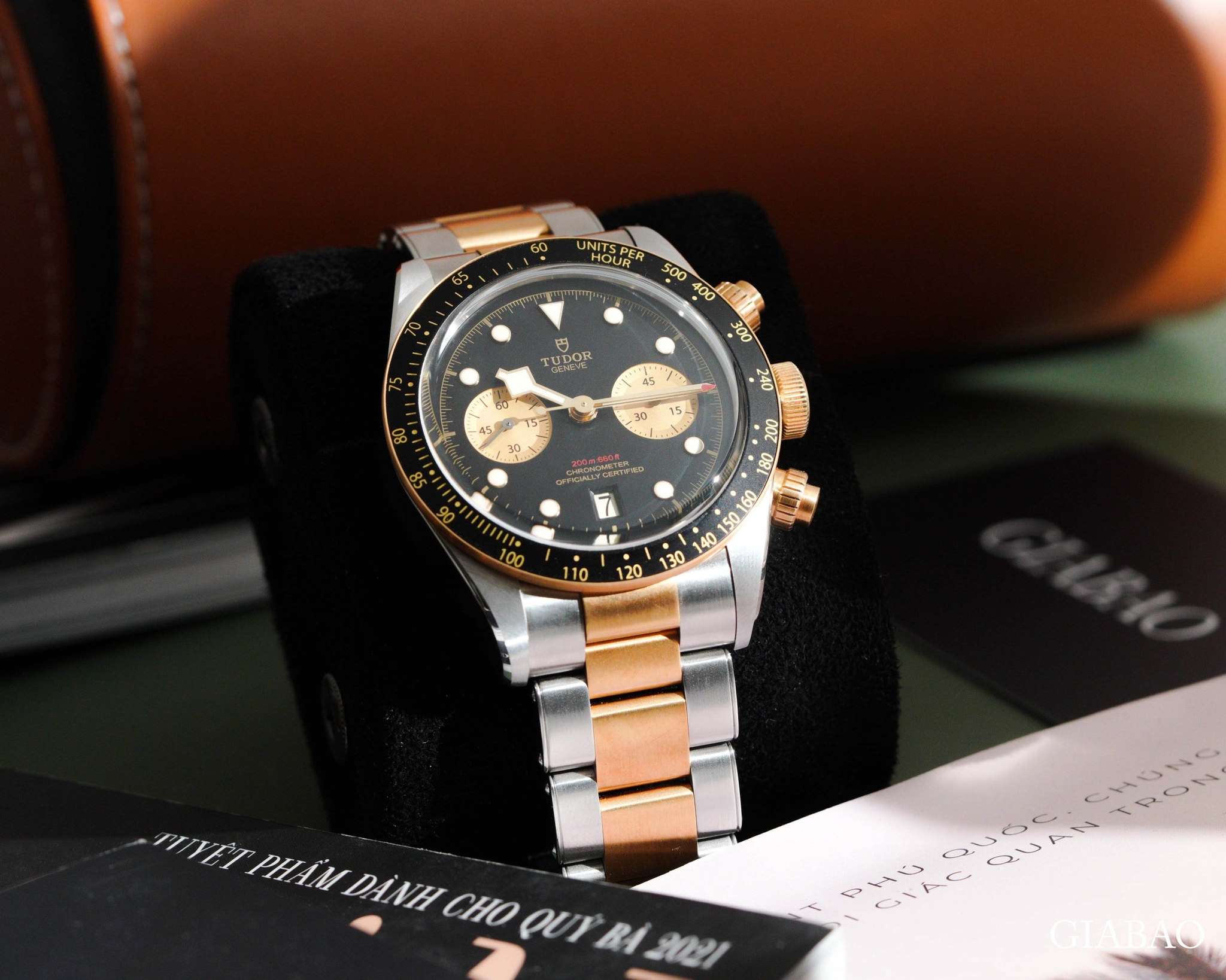 Theo quan điểm nhiều nhà sưu tầm, Tudor đang thể hiện mình là một thương hiệu xuất sắc trong ngành, tạo ra những cỗ máy đếm thời gian có chất lượng ổn định nhất hiện nay. Loạt đồng hồ Heritage Black Bay Chrono đã tạo ra thành công quan trọng khi ra mắt. Nhất là với phiên bản đồng hồ Heritage Black Bay Chrono hai tông màu có hơi hướng cổ điển. Gia Bảo muốn nhắc đến mẫu đồng hồ Tudor Black Bay 79363N-0001 làm từ hai chất liệu.