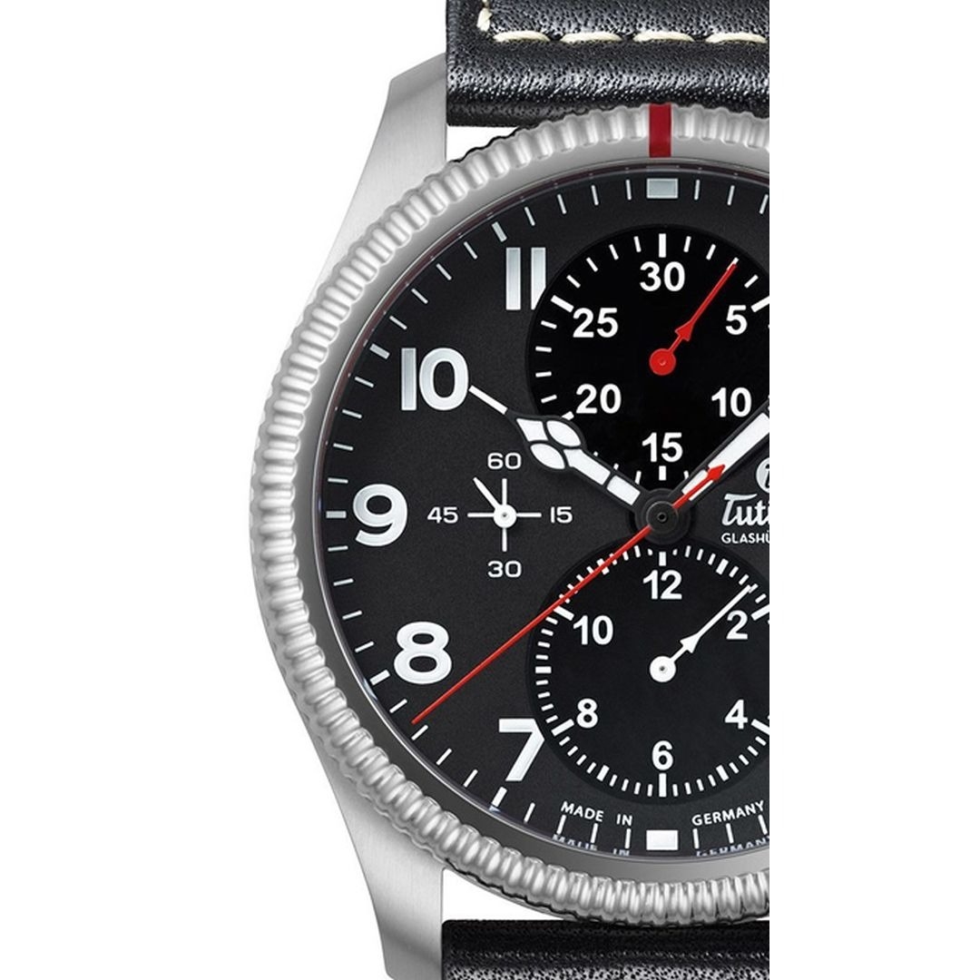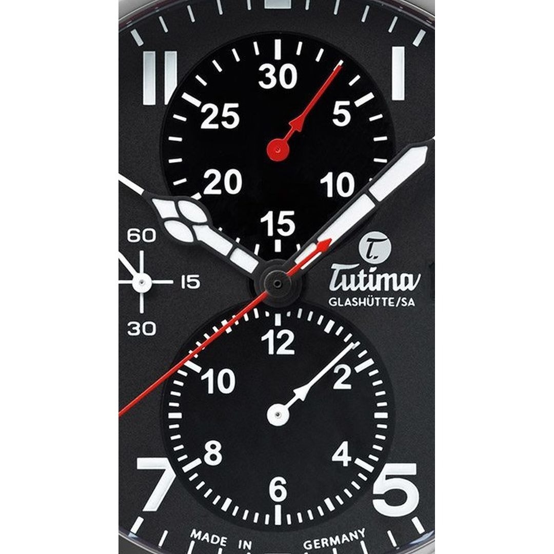 Đồng hồ đeo tay thương hiệu Tutima, dòng sản phẩm Grand Flieger Classic, Ref no: 6402-01, mặt số nhung đen, size 43mm, máy tự động, vỏ đồng hồ bằng thép không gỉ và dây da bê màu đen, hàng mới 100%