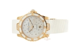 Là một mẫu đồng hồ dành riêng cho phái đẹp, Ulysse Nardin Diver 8156-180E-3C/20 hướng đến sự trang nhã và tinh tế. Chính vì vậy, phần vành bezel của mẫu đồng hồ này cũng được chế tác vừa vặn với bộ vỏ, bên trên phủ một lớp sơn trắng và những hoạt tiết hình sóng kỳ ảo đầy thú vị. Chưa dừng lại ở đó, 12 viên kim cương cũng lần lượt được đính lên vành bezel, mang lại một sắc màu lộng lẫy và vô cùng sống động cho sản phẩm.