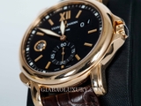 Từ hai chất liệu chính là vàng hồng 18K cùng da cá sấu cao cấp, chiếc đồng hồ được chế tác với mặt số đen tròn 42mm, kết hợp với bộ kim đồng hồ và tia chỉ giờ theo phong cách hải quân truyền thống của Ulysse Nardin. Từng mặt số phụ của chiếc đồng hồ tích hợp đa chức năng được hoàn thiện khá hợp lý, tại mốc 2h là cửa sổ báo ngày, 6h là mặt số phụ đếm giây và vị trí 9h còn lại là ô chỉ giờ Dual Time. Bao bọc bảo vệ bên ngoài mặt số đồng hồ là một vòng bezel trơn với bộ núm chỉnh và nút bấm giờ chế tác kĩ lưỡng, đem đến tổng thể hoàn chỉnh cho chiếc đồng hồ của chúng ta.