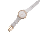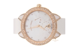 Mặt số của đồng hồ được nạm xà cừ trắng rất tinh tế làm nổi bật lên bộ kim trung tâm làm từ vàng hồng 18k và bộ cọc số kim cương lấp lánh. Cửa sổ phụ chỉ ngày được đặt tại vị trí 6h quen thuộc nổi bật với nền trắng chữ đen rất sắc nét giúp người đeo thuận tiện theo dõi thời gian khi bận rộn. Dây đeo màu trắng tạo sự tinh khiết, sang trọng cho quý cô khi đeo trên cổ tay.