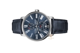 Cửa sổ phụ chỉ ngày được đặt tại vị trí 6h quen thuộc nổi bật với nền trắng chữ đen giúp người đeo dễ dàng theo dõi thời gian. Dây đeo được làm từ chất liệu da cá sấu cùng màu với mặt số tạo sự đồng nhất về thiết kế và tông thêm sự lịch lãm cho quý ông khi đeo trên tay.