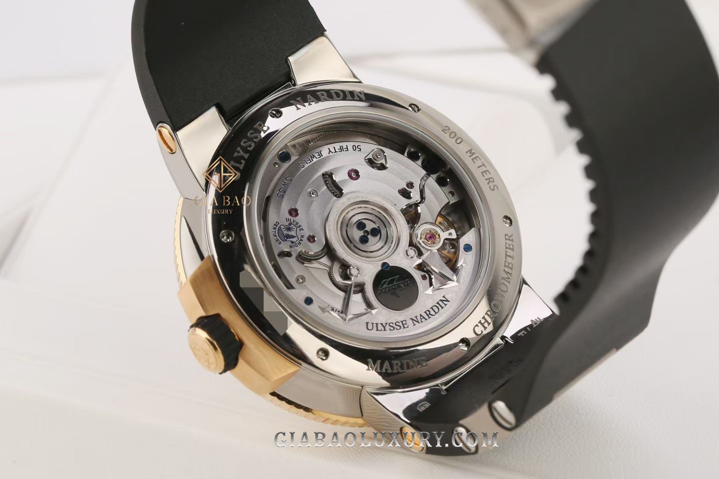 Ulysse Nardin rất mạnh trong việc chế tác máy và sử dụng linh kiện Silicon hiện đại. Do đó, họ tự sản xuất phần lớn những bộ máy bên trong đồng hồ. Với phiên bản Ulysse Nardin Marine 1185-122/41, chúng ta có bộ máy tự động Caliber UN-118 có thời lượng cót lên tới 60 giờ. Bộ máy này sử dụng bộ thoát làm từ DIAMonSIL, là sự kết hợp giữa kim cương và silicon cực kỳ độc đáo.