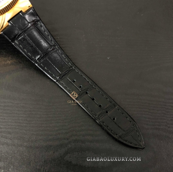Dây đeo đồng hồ được làm từ chất liệu da cao cấp màu đen với những đường vân tạo sự mạnh mẽ. Dây đeo da cũng mang đến sự sang trọng và thoải mái cho các quý ông khi đeo trên tay tại những môi trường khác nhau.