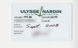 Tại vị trí số 147 của phiên đấu giá Sotheby's là một thiết kế của nhà Ulysse Nardin - Đồng hồ Ulysse Nardin Royal Blue Tourbillon 799-80 được sản xuất năm 2008.