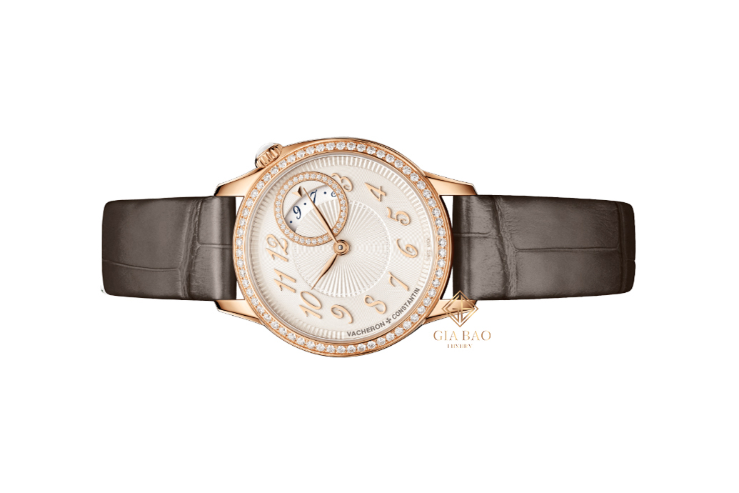 Hướng đến cái nhìn thanh lịch và đầy tính thẩm mỹ, thương hiệu Vacheron Constantin đã tạo nên một mặt số hài hoà bên dưới mặt kính sapphire của mẫu đồng hồ Egérie 1205F/000R-B622. Tông màu được sử dụng trong thiết kế mặt số này là trắng bạc và ở đó, nhà sản xuất đã tạo nên từng khu vực với họa tiết guilloche bắt mắt. Vân guilloche theo hình vân tia mặt trăng đã đảm bảo xuất sắc khả năng gây ấn tượng với tính bắt sáng cao. Đính nổi lên vòng tròn đệm là 10 cọc chỉ giờ bằng vàng đã được đánh bóng toàn diện. Mềm mại và bắt sáng, những cọc chỉ giờ bằng vàng đã tiết lộ kỹ thuật xử lý đính cao từ nhà sản xuất Vacheron Constantin.