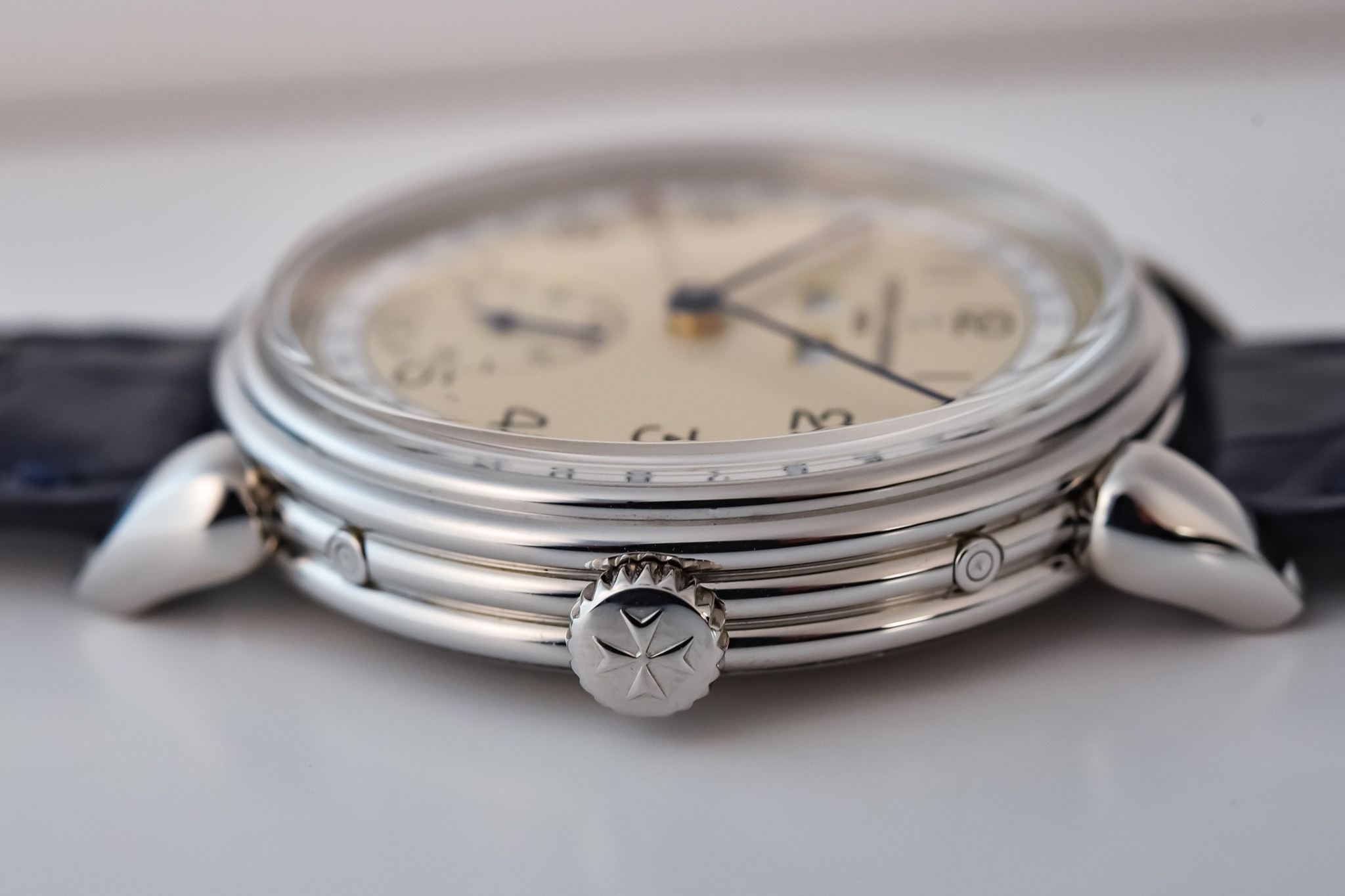 Ở cạnh đồng hồ sẽ xuất hiện một số nút bấm nhỏ, dùng để điều chỉnh các chỉ báo thứ, ngày, tháng. Với thiết kế có nhiều lỗ hổng như vậy, nhưng Vacheron Constantin vẫn có thể đảm bảo khả năng chống nước của chiếc đồng hồ ở mức 30m. Núm chỉnh giờ được làm mảnh, tương đối dẹt và trên đó tất nhiên sẽ có logo của thương hiệu được dập nổi.