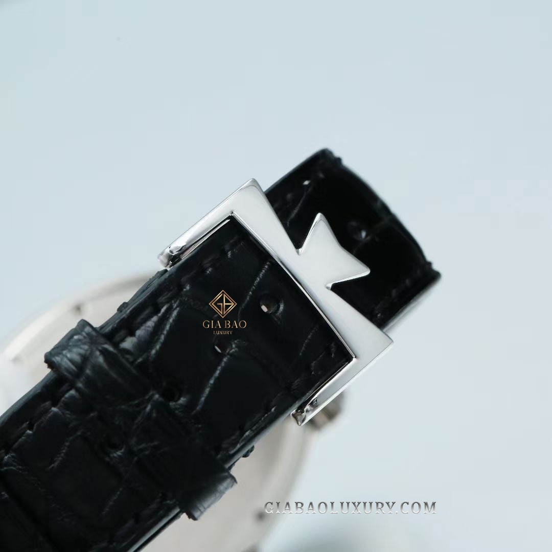 Toàn bộ vỏ đồng hồ được đánh bóng khá đơn giản, nhưng riêng càng nối dây thì được tạo thêm điểm nhấn với những góc cạnh tạo hình bậc thang. Chi tiết này có nhiệm vụ cố định sợi dây bằng chất liệu da cá sấu, đúng theo tinh thần lịch lãm của thương hiệu Thụy Sĩ lâu đời. Bên dưới lớp da cá sấu còn có thêm một lớp da bê, làm tăng độ mềm mại và sự thoải mái cho người dùng.