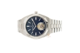 Mặt số đồng hồ được hoàn thiện với tông xanh lam cực kỳ bắt mắt, và còn được thiết kế chuyển sắc theo mỗi góc nhìn. Bộ cọc số và kim được thiết kế đơn giản theo dáng baton và được quét chất phản quang Super-LumiNova. Tuy đơn giản là vậy, nhưng từng chi tiết nhỏ bé đó đều được làm từ vàng trắng và được hoàn thiện đánh bóng tỉ mỉ.