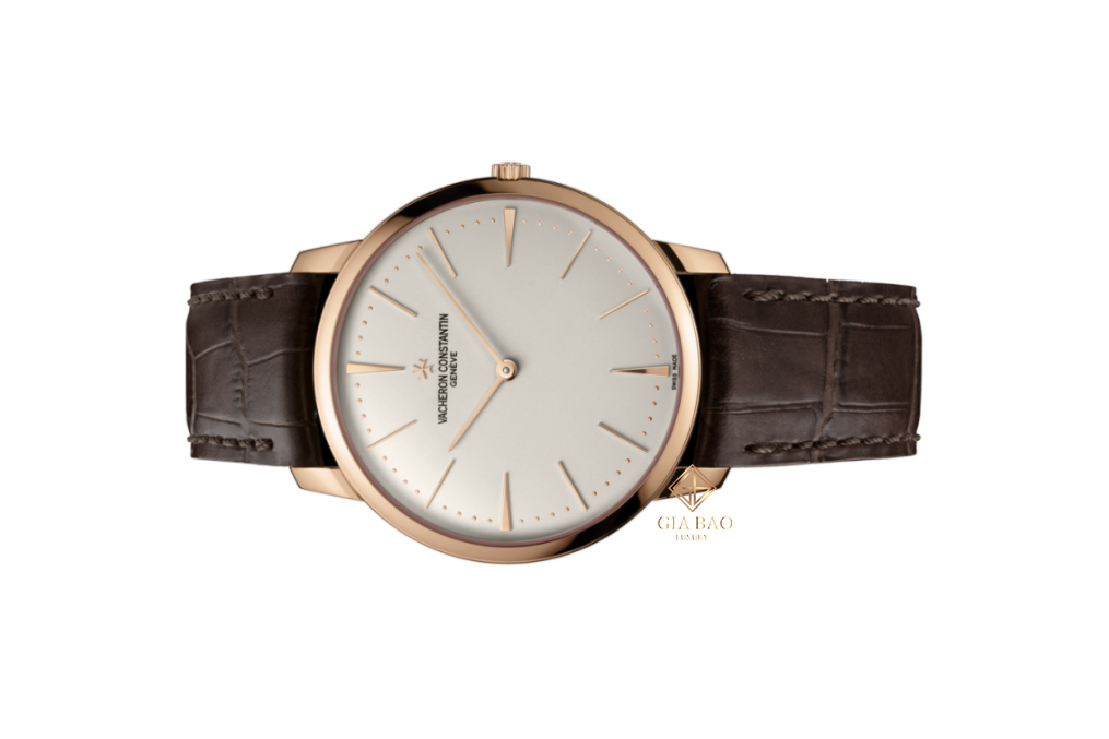 Một chiếc Dress Watch cổ điển tất nhiên sẽ đi kèm với bộ dây da cá sấu. Không chỉ vậy, màu da được giữ ở độ tự nhiên cao nhất, với tông màu nâu đặc trưng. Sợi dây được cố định trên cổ tay người dùng bằng bộ khóa cài bằng vàng hồng, tất nhiên trên đó cũng có logo thương hiệu Vacheron Constantin.