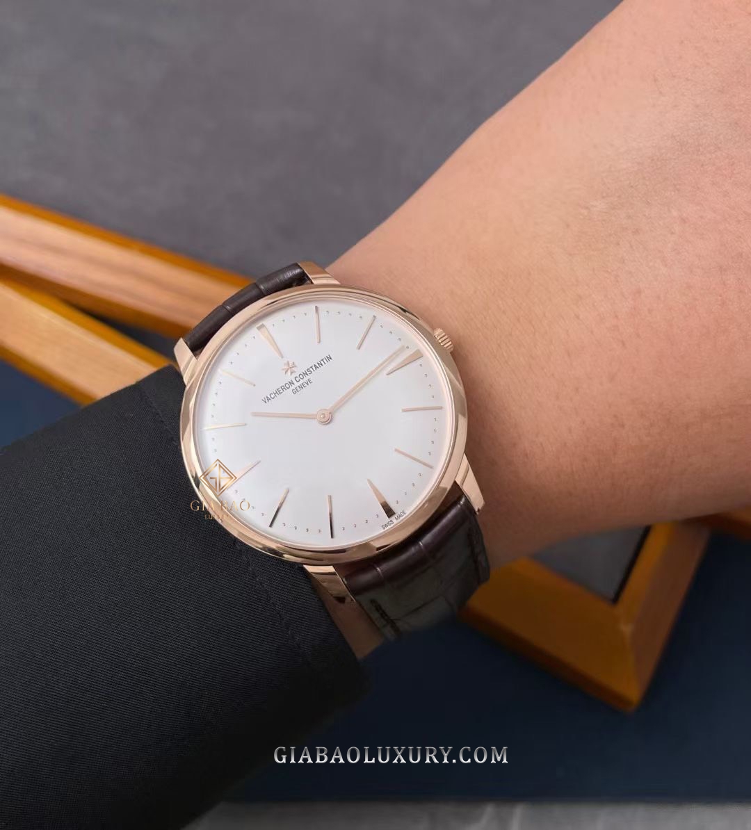 Mẫu đồng hồ này sở hữu những chi tiết đặc trưng nhất, quen thuộc nhất của một chiếc Dress Watch. Bộ vỏ đồng hồ được chế tác từ vàng hồng nguyên khối, có đường kính 40mm vừa phải. Quan trọng hơn, độ dày của chiếc Patrimony chỉ có 6.79mm, có thể dễ dàng chui vào bên trong tay áo sơ mi, kết hợp hoàn hảo với những bộ đồ Âu.