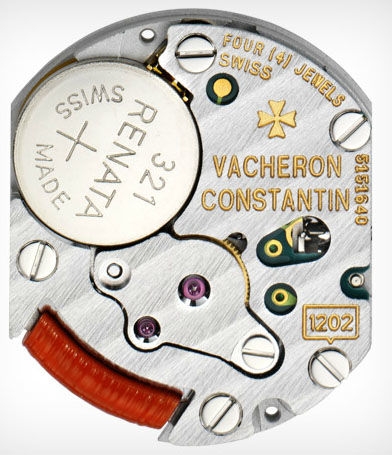 Náu mình trong bộ khung vỏ bằng vàng trắng sang trọng là bộ máy quartz Caliber 1202 có 4 chân kính được sản xuất theo công nghệ in-house độc quyền của Vacheron Constantin.
