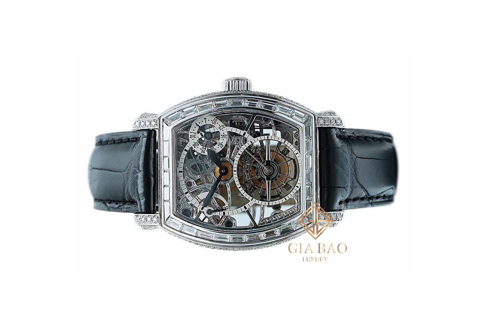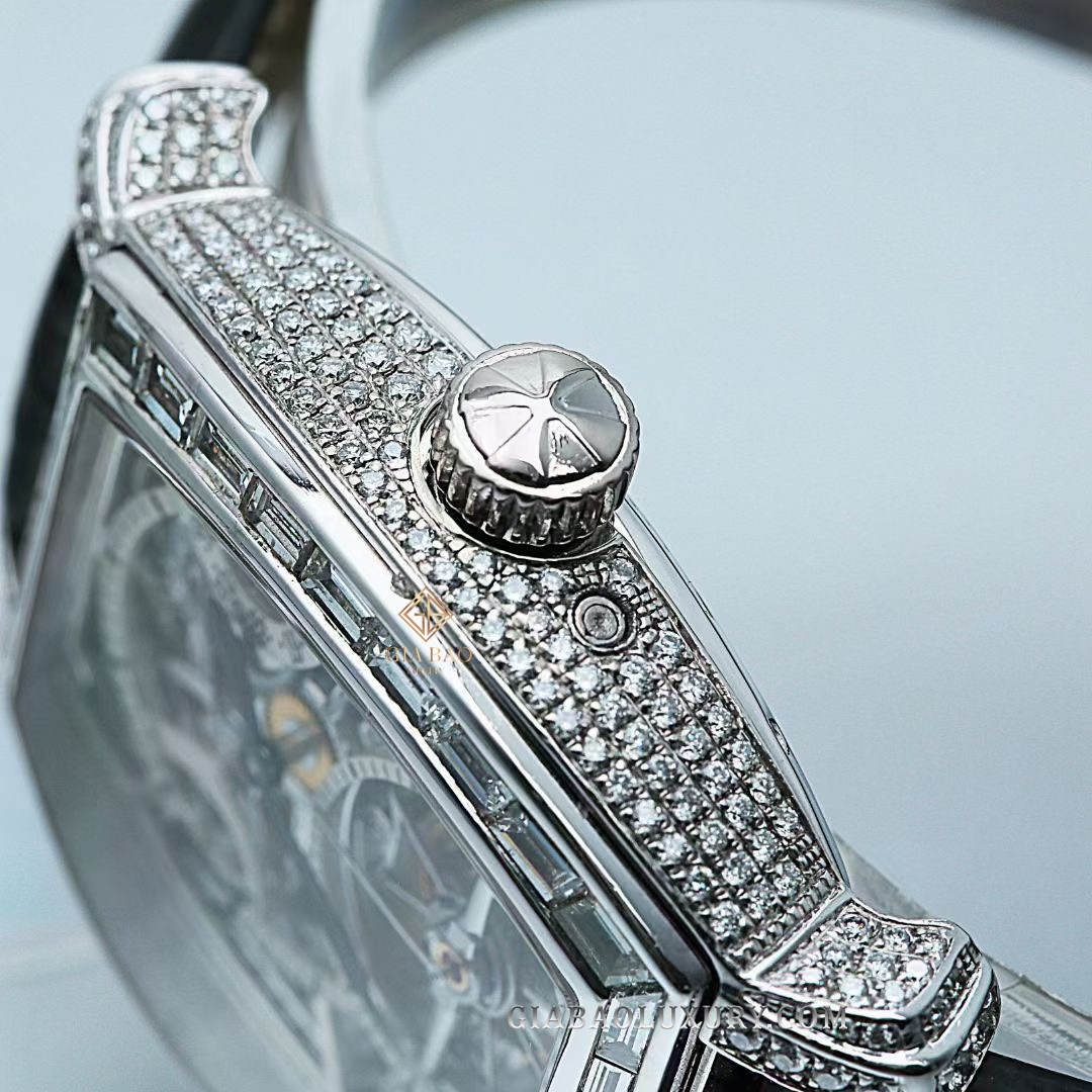 Chiếc đồng hồ này có bộ vỏ được chế tác từ Platinum, có độ cứng cao và khả năng chống xước tuyệt vời ở cạnh bên. Sở dĩ tôi phải nói cạnh bên bởi vì mặt trước của đồng hồ không thể bị xước. Trên bề mặt Platinum, Vacheron Constantin đã đính thêm những viên kim cương Baguette quý giá - vật liệu có độ cứng cao nhất trên Trái Đất.