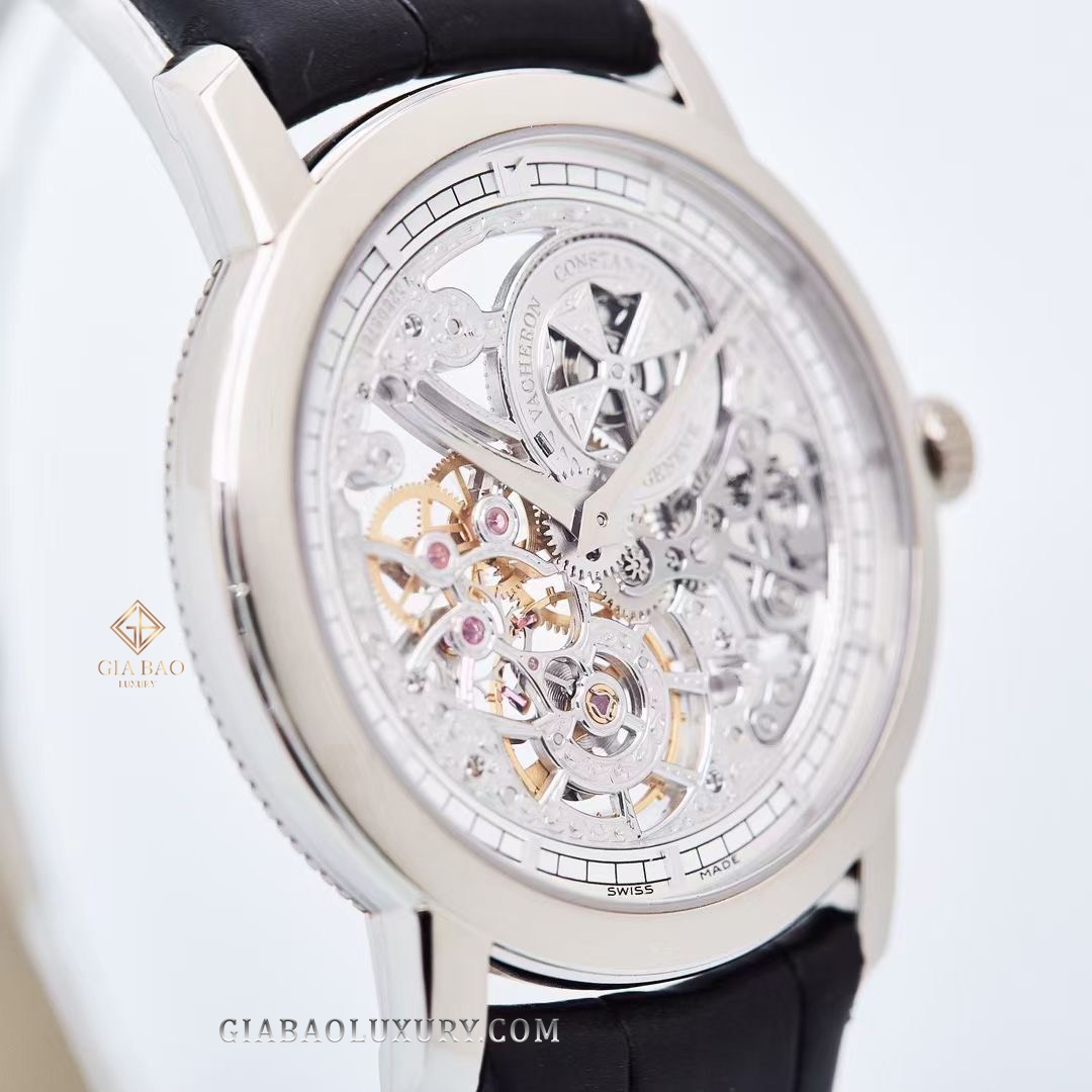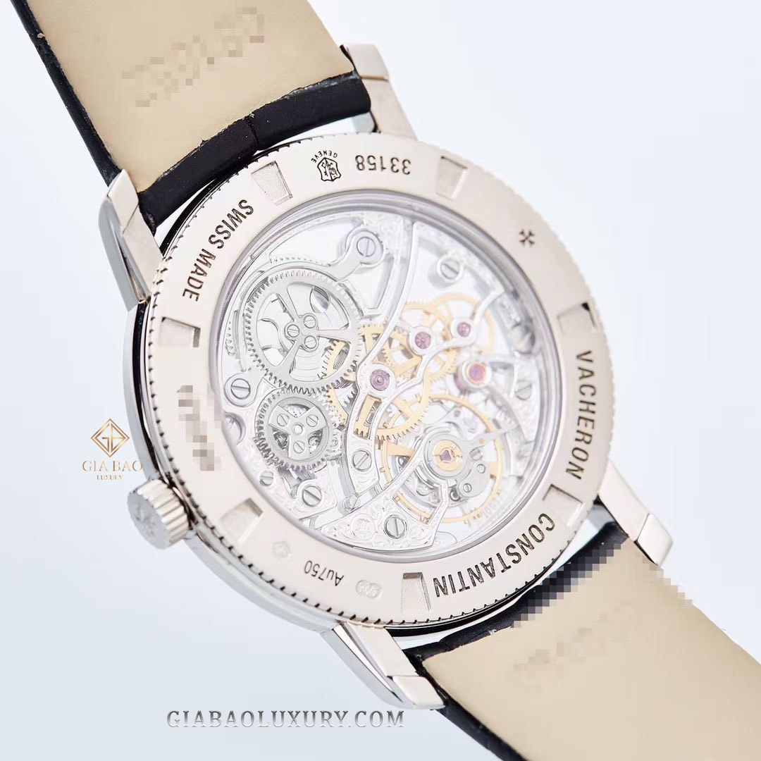 Chiếc Đồng Hồ Vacheron Constantin Traditionnelle 33158/000G-9394 của Vacheron Constantin gây ấn tượng mạnh trong lòng giới mộ điệu bởi thiết kế mặt số Skeleton để lộ toàn bộ những chi tiết và chuyển động của bộ máy lên cót tay Cal 1003 SQRH. Từng chi tiết trong bộ máy được cắt gọt tỉ mỉ qua bàn tay khéo léo của người nghệ nhân chế tác đồng hồ.
