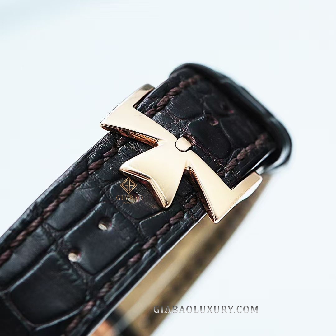 Với dây da, ta sẽ không có cảm giác lạnh khi chạm vào kim loại vào mùa đông. Bên cạnh đó, dây da còn nhẹ nhàng và cực kỳ mềm mại. Đặc biệt hơn, dây da cá sấu lại là đỉnh cao trong những thiết kế dây da, có giá trị cao và một bề mặt sang trọng. Ta cũng không thể bỏ qua bộ khóa bằng vàng khối đặc trưng của Vacheron Constantin, với biểu tượng chữ thập Maltese.